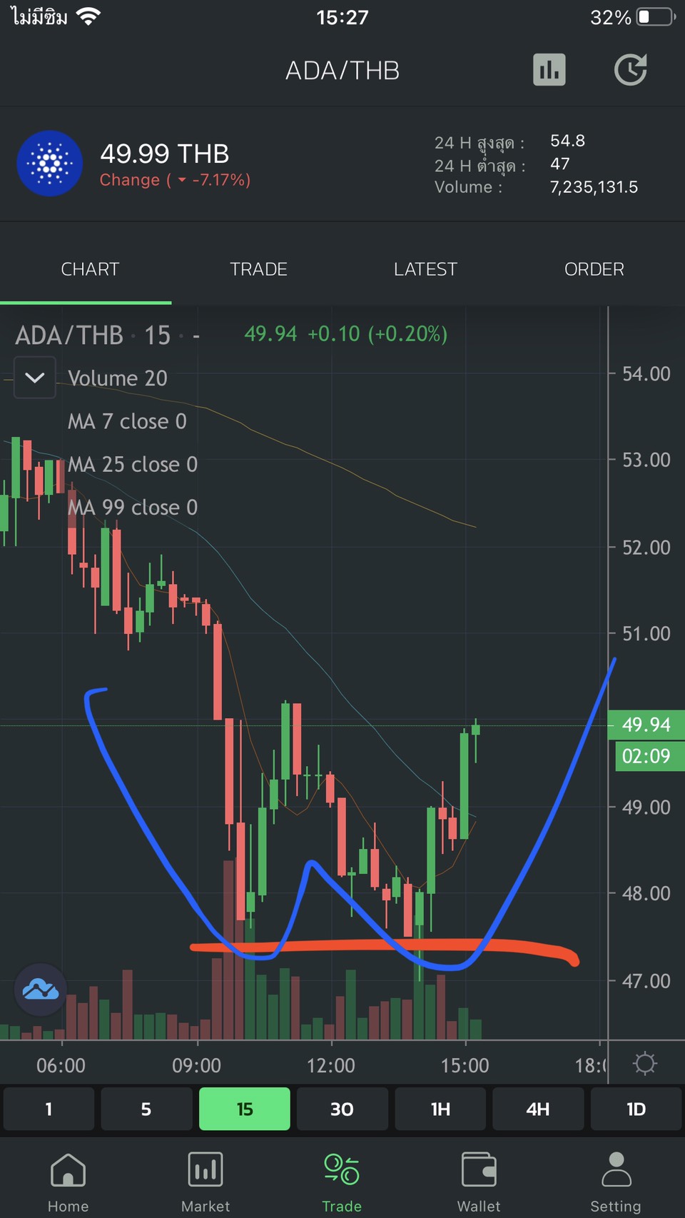 มาพร้อมกับหุ้น เลย แต่ยังไม่ได้ซื้อ. ดูไปก่อน. ///แตะแนวรับก้เด้งเหมือนหุ้น