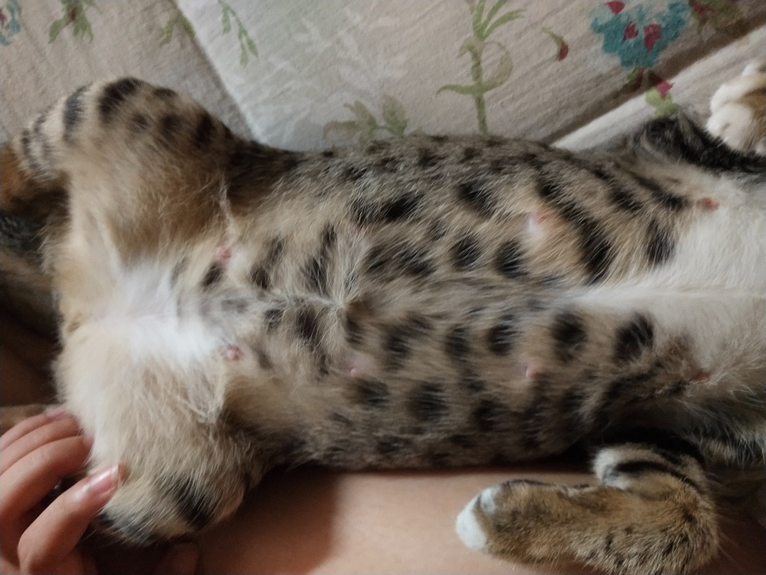 ไม่แน่ใจว่าน้องท้องมั้ย เป็นแมวจรเลี้ยงปล่อยมาหลายปีมากๆแล้ว ไม่รู้ว่าท้องหรือเป็นอะไรปกติไม่เคยเห็นเต่งขนาดนี้ แต่ก่อนหน้านี้อีกหลายปีมาแล้ว เคยทำหมันให้แล้วค่ะ เป็นเม็ดเต่งๆแบบนี้ทุกเต้าเลยค่ะ