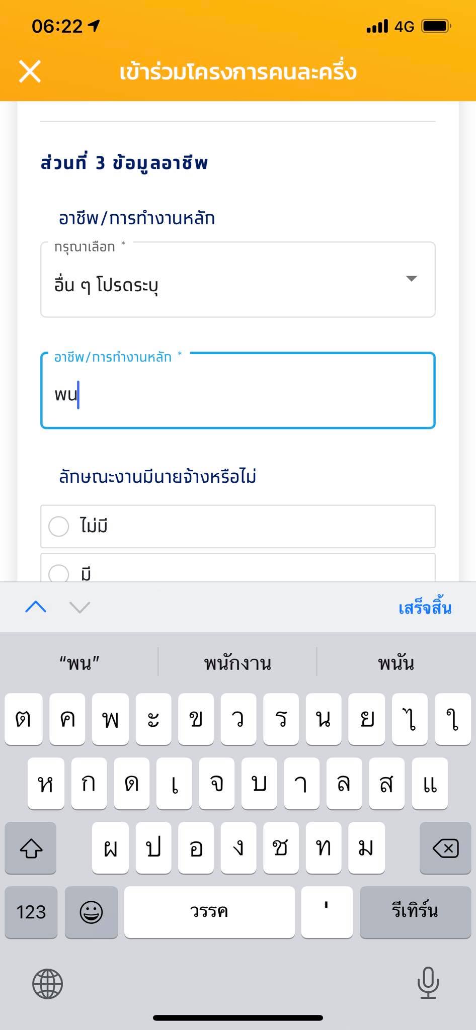 ข้อมูลเดิม เพิ่มเติมคือใส่ เกี่ยวกับอาชีพ รายได้ ตามข้อ 3