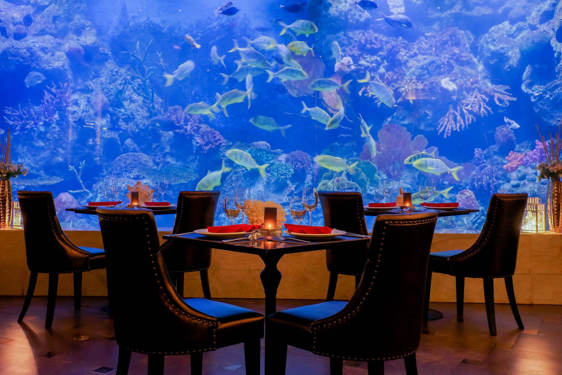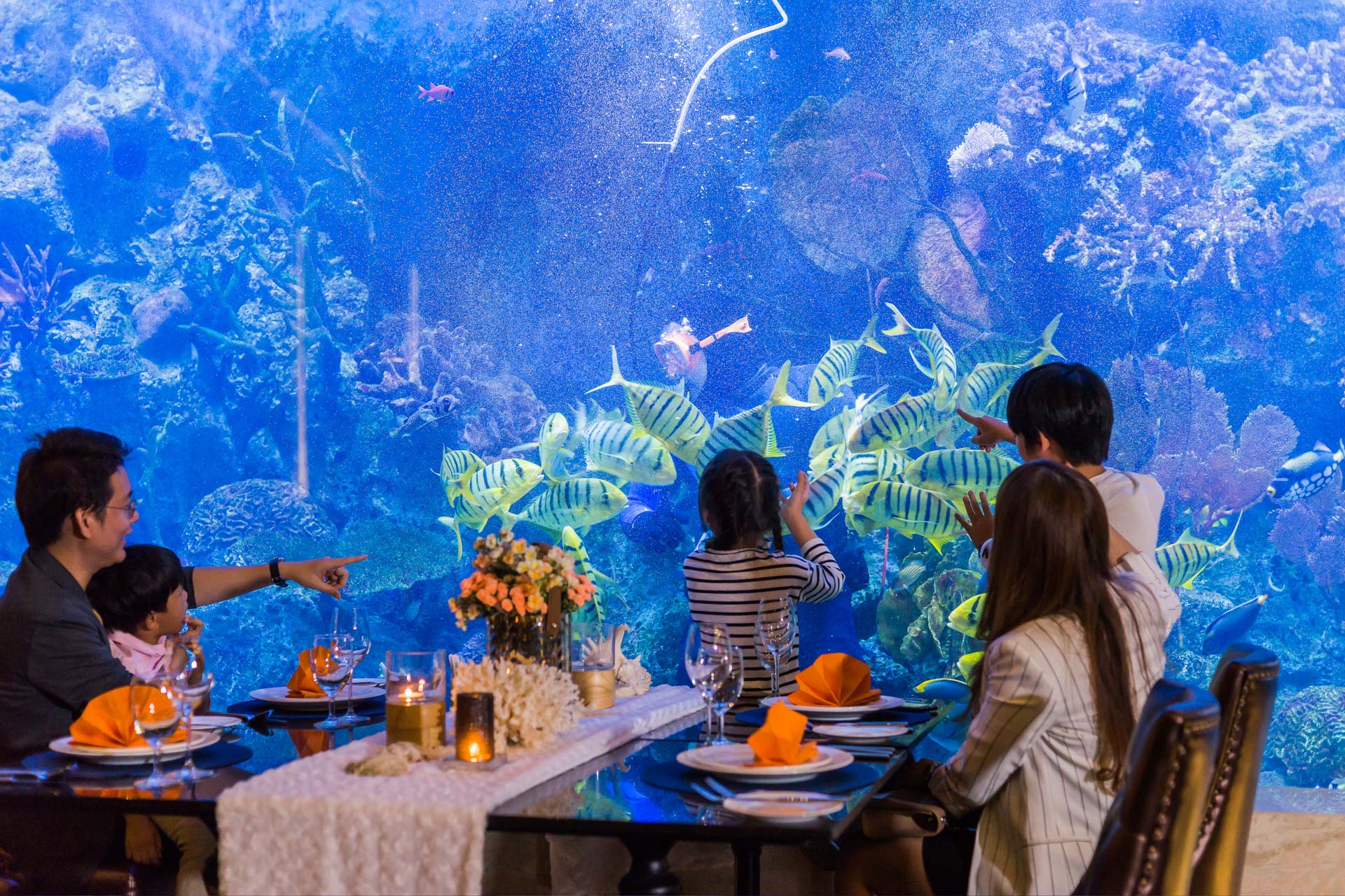 นั่งทานในบรรยากาศใต้ท้องทะเลวิวอควาเรี่ยมสุดหรู กับเหล่าฝูงปลาน้อยใหญ่ #เป็นส่วนตัว ไม่แออัด ให้คุณดื่มด่ำกับอาหารรสเลิศในบรรยากาศสุดพิเศษไม่เหมือนใคร #ใจกลางย่านห้วยขวาง