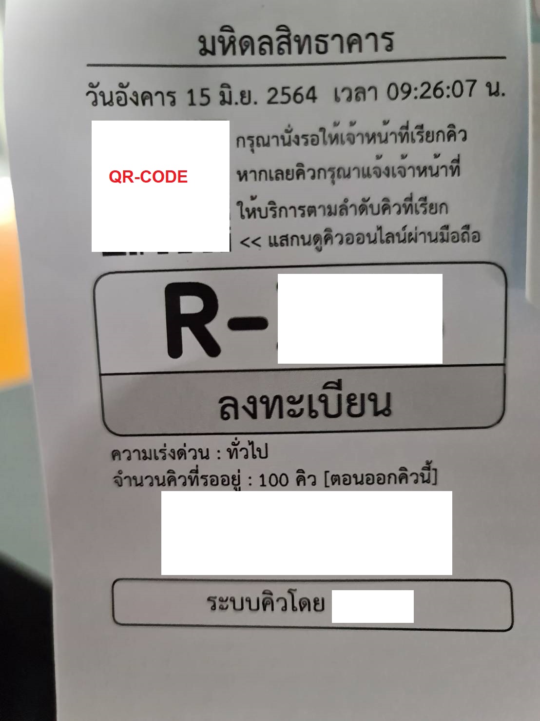 ซึ่งในระหว่างที่รอก็จะมี จนท. มาให้คำแนะนำว่าควรทำอย่างไร หรือขั้นตอนต่อไปจะทำอะไร และ ถ้าขี้เกียจดูจอว่าตอนนี้คิวที่เท่าไรแล้ว สามารถ Scan QR-Code ใน บัตรคิวได้