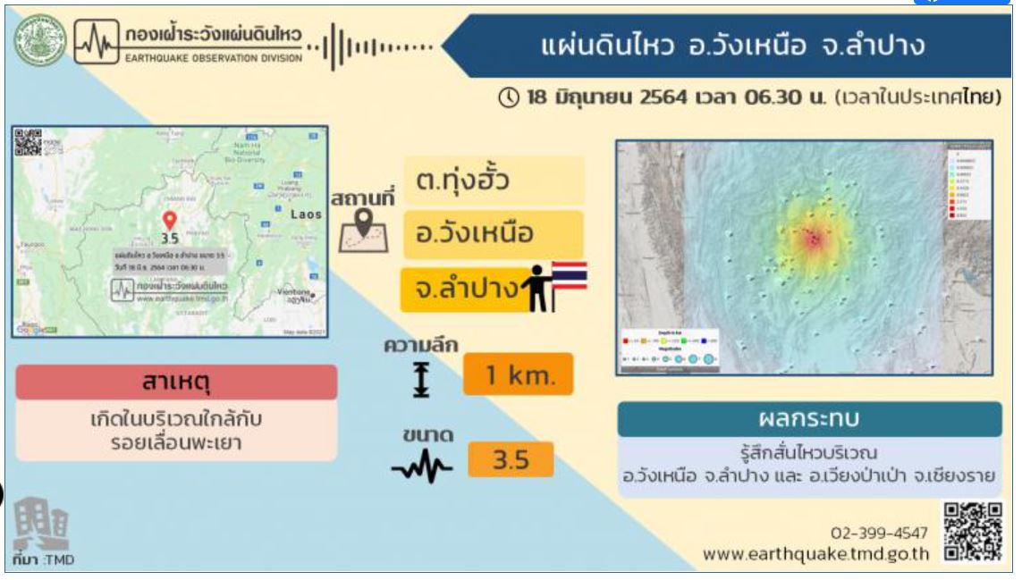 ไหวขนาดไม่แรง แค่๓.๕หน่วย แต่จุดศูนย์กลางตื้น ทำให้รู้สึกว่าแรง