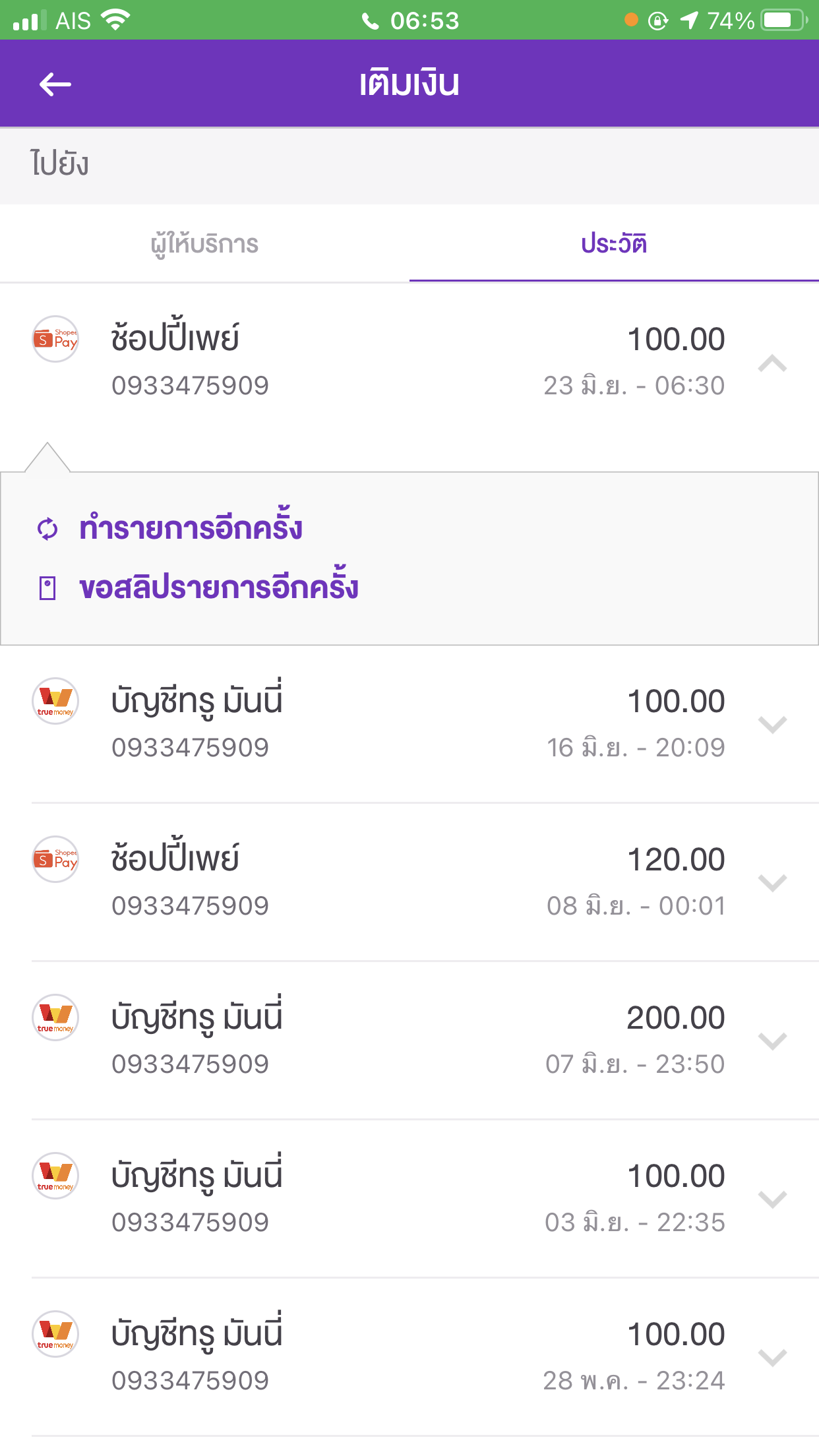 ผมเติมโรบอกว่าจะซื้อพาสนิดหน่อย เติมไป40 บาท ยอดโอนไปแล้ว แต่ของไม่เข้า แถมขึ้นในประวัติว่ายกเลิกไปแล้ว ทั้งๆที่ยอดก็โดนตัดไปแล้ว