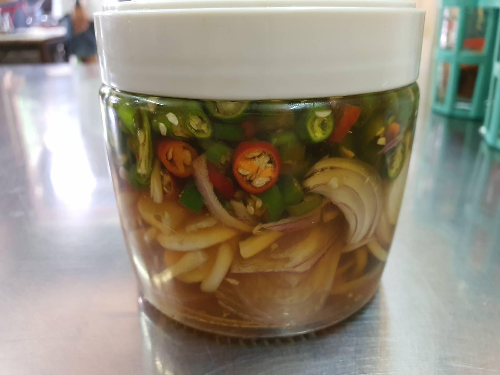 พริกน้ำปลาที่นี่ครบเครื่องมากใส่ทั้งพริกขี้หนูสวนซอย กะเทียมสดซอย และหอมแดงซอย บอกเลยเด็ด! ทำใหม่ๆ