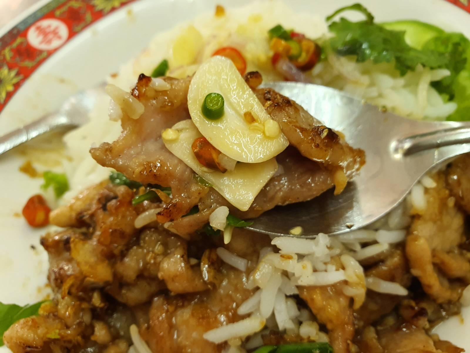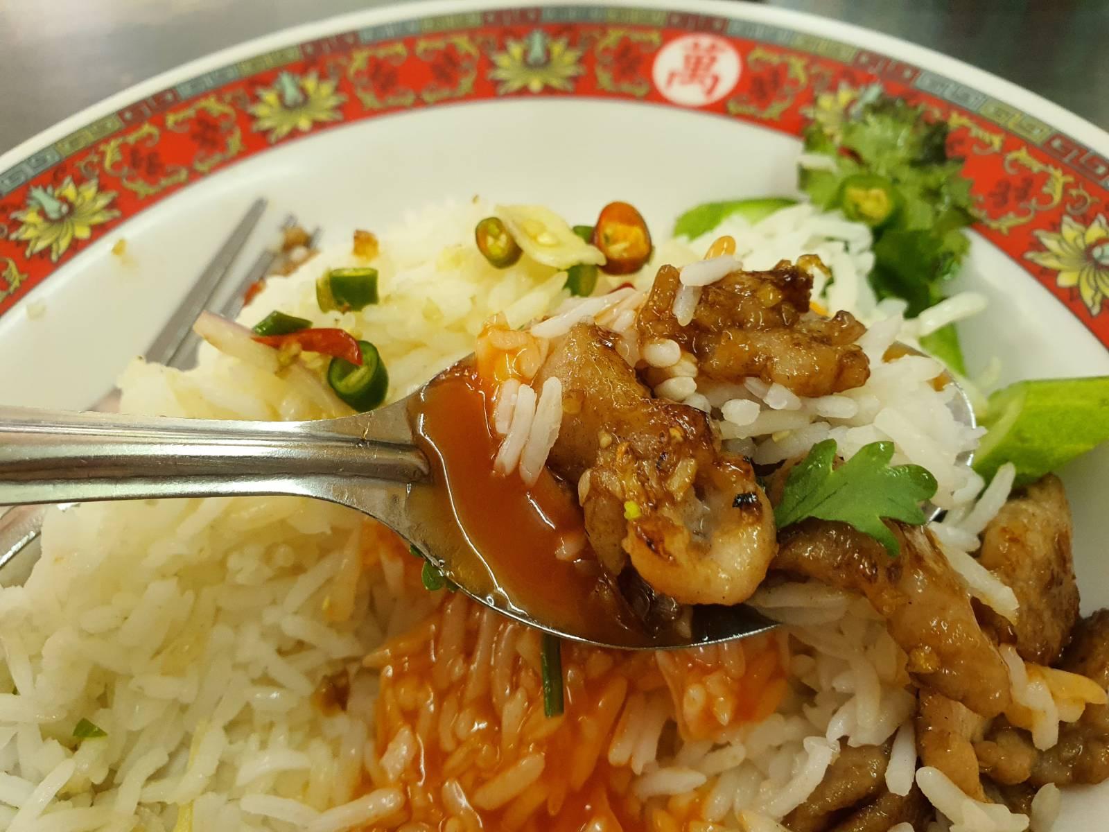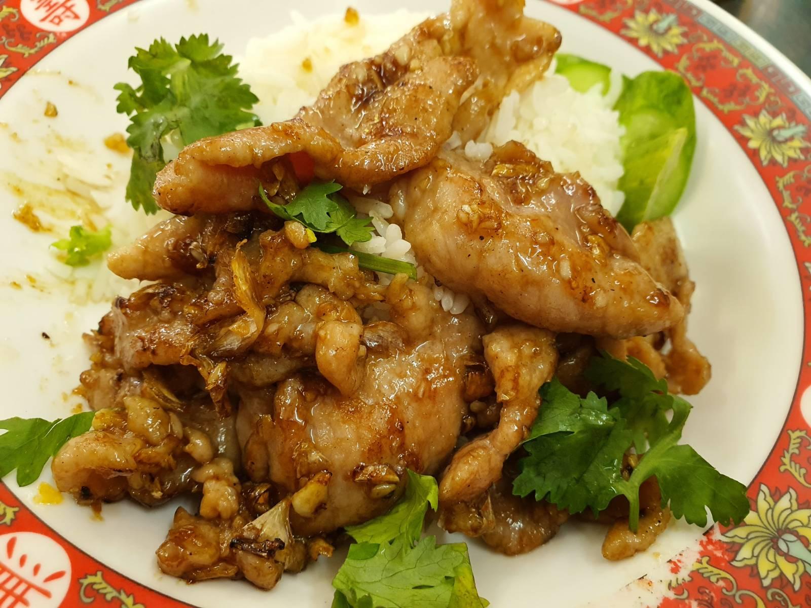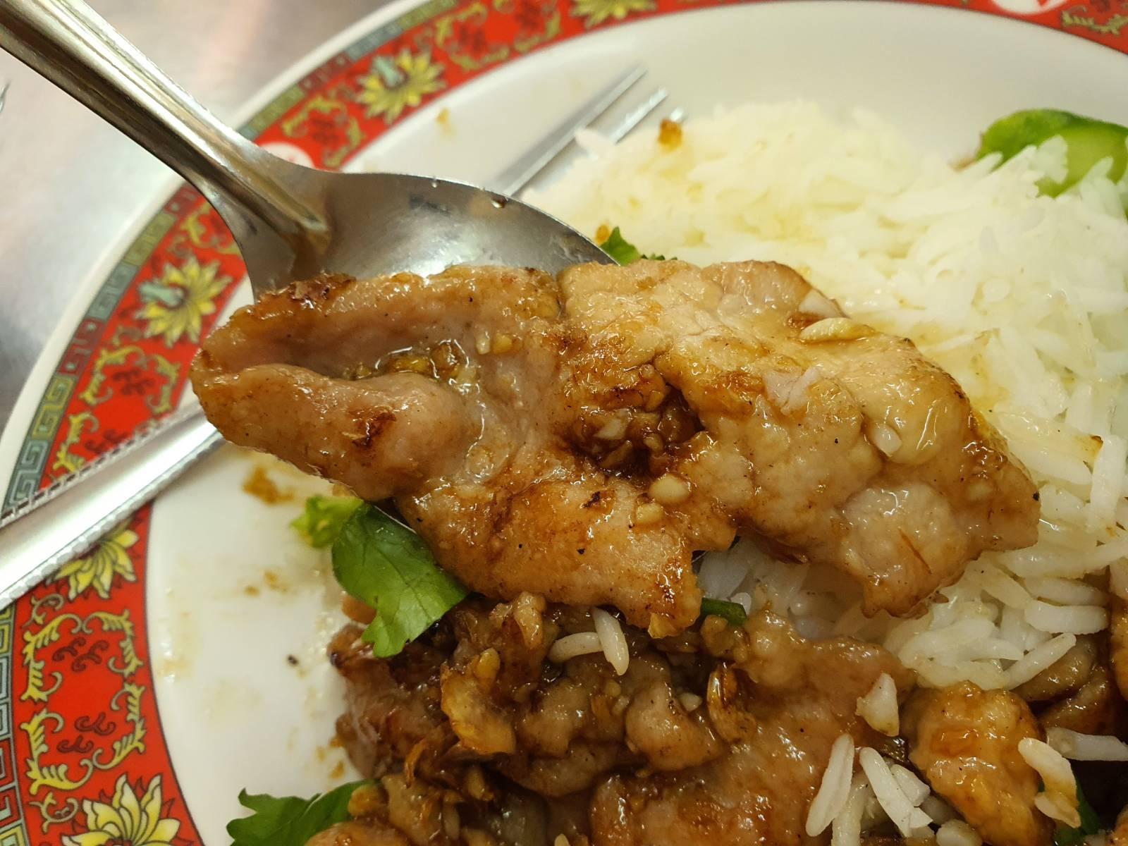 ทางร้านใช้หมูหมักนุ่มที่ใช้ทำราดหน้ามาทอดกระเทียมปรุงรสถึงเครื่อง ผัดไฟเเรงหอมกะทะ เสียดายนิดที่ใช้ข้าวแข็ง เพราะเบลไม่คุ้นชินกับข้าวแข็งๆ แต่หมูนี่อร่อยเทพมากค่ะ