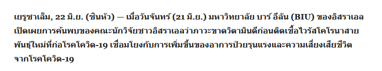 ภาวะขาดวิตะมิน D กับโควิด.... กรณีศึกษาจากอิสราเอล