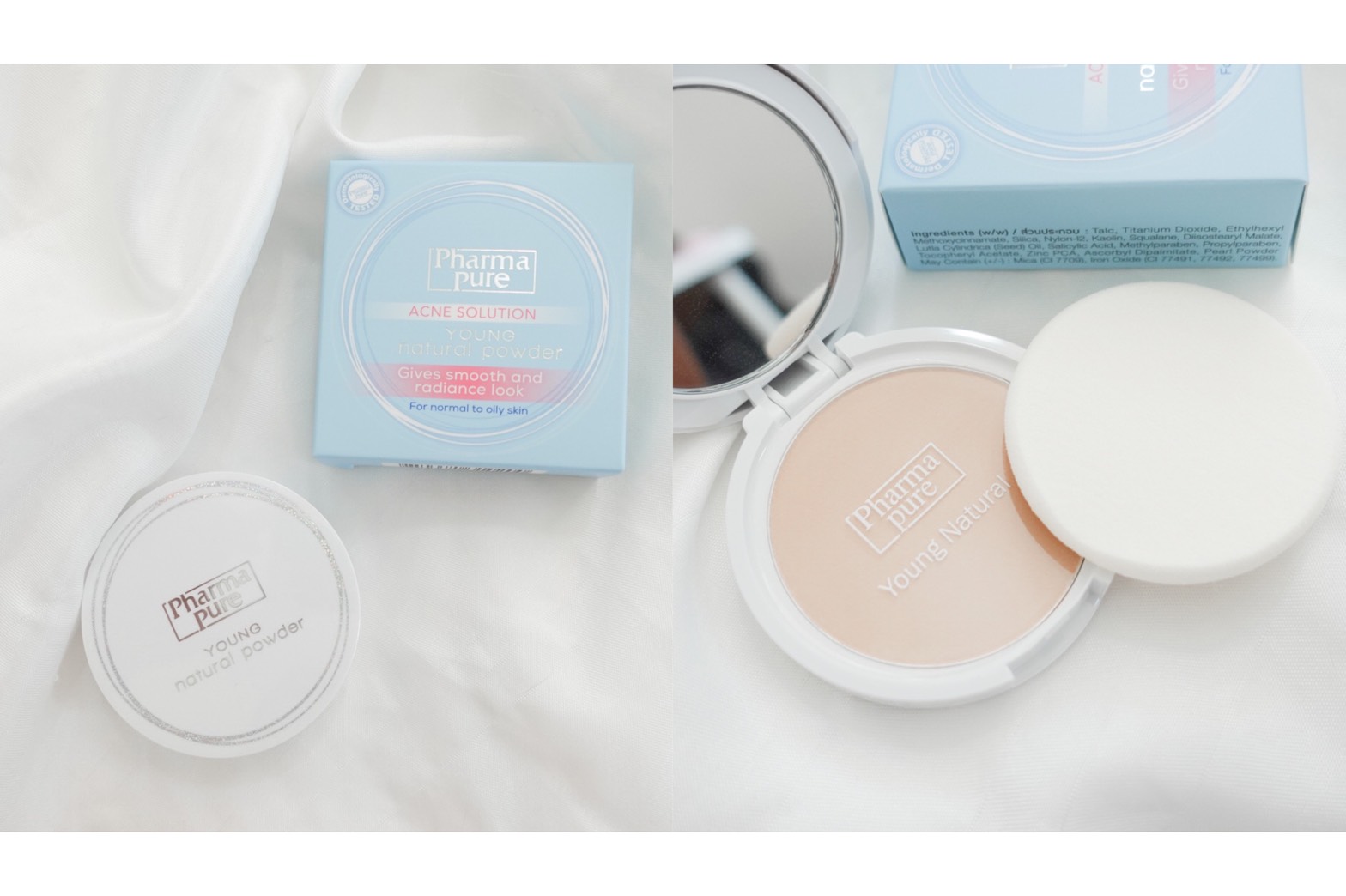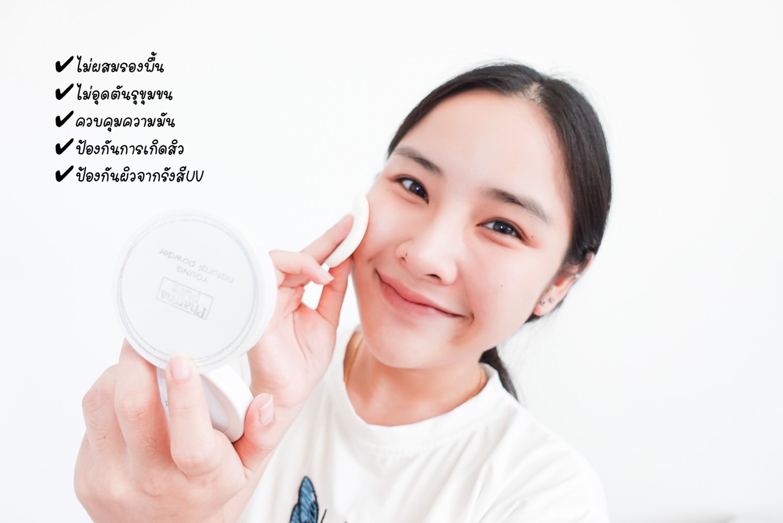 มากๆ อายได้ทำการทาแป้ง PharmaPure Young Natural Powder ลงไปเพียงครั้งเดียว