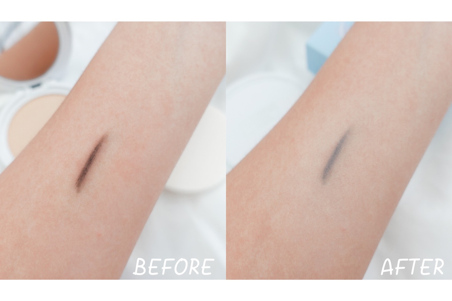 จะเห็นได้ว่าเค้าปกปิดได้ดีในระดับหนึงเลย สำหรับแป้งที่ไม่ผสมรองพื้น และไม่รู้สึกหนา