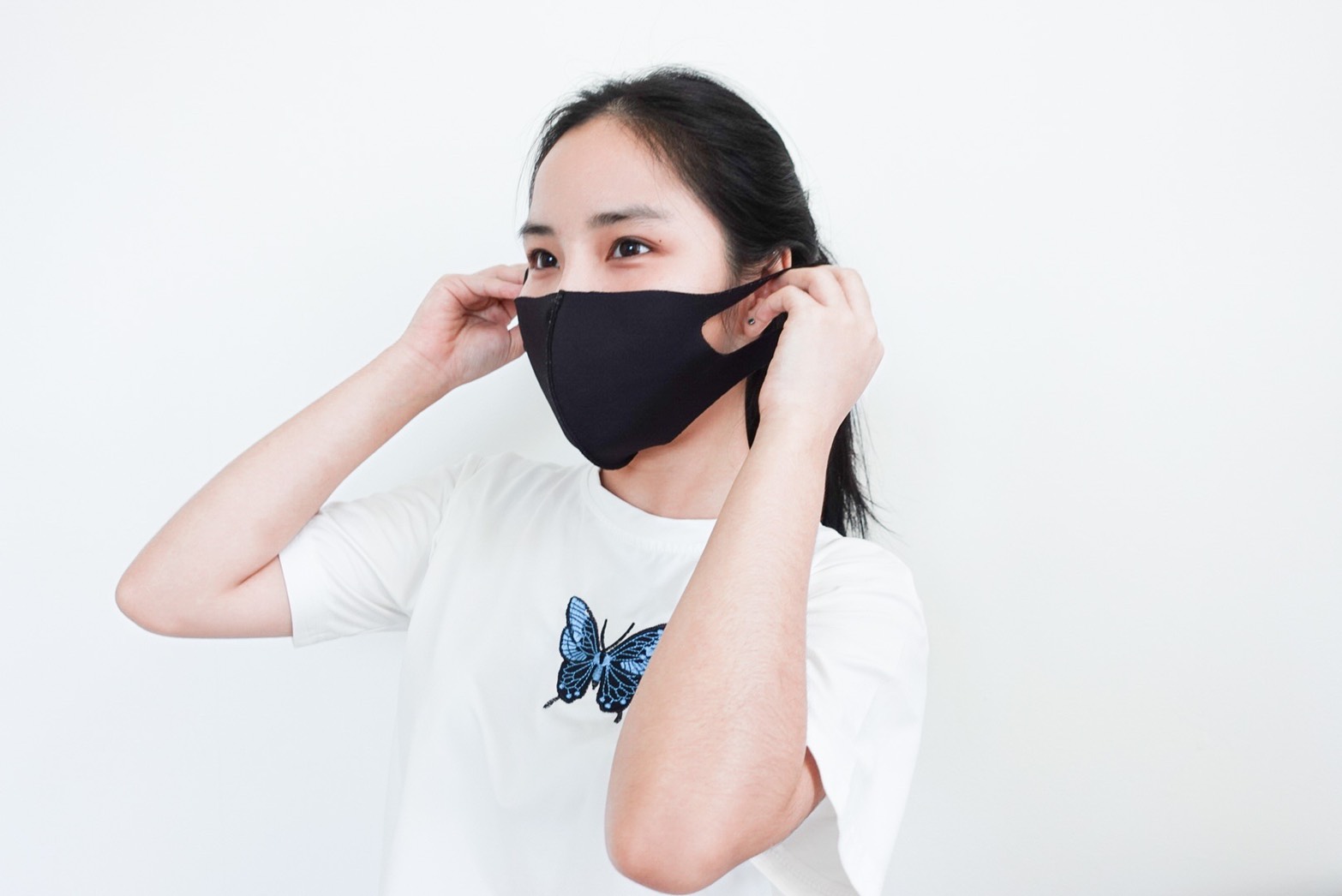 การใช้หน้ากากอนามัยแบบผ้า ส่วนตัวอายเลือกใช้ของ 3M เป็นสีดำแบบในรูป