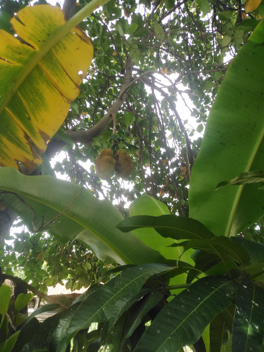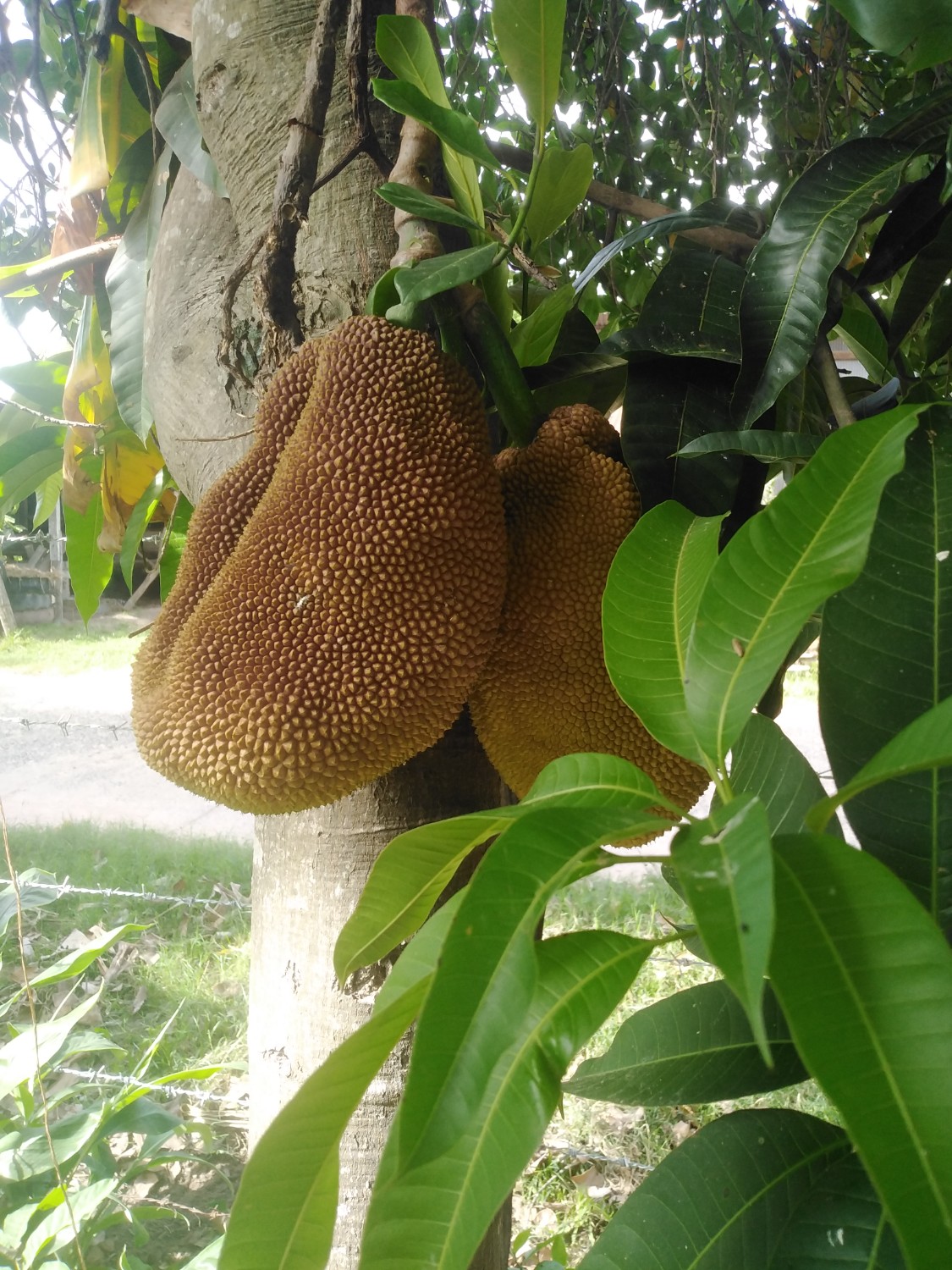 เพื่อนบ้านที่อยู่แถวสวนผม มีต้นขนุนใหญ่ เห็นว่าปลูกไว้นานแล้ว ได้เก็บกินทุกปี แต่ปีนี้มีลูกค้ามาจองไว้ครบแล้ว CF ด้วยการถ่ายรูป แล้วชี้ ๆ ว่าลูกนี้จองแล้วนะ บนต้นน่าจะอีกพักใหญ่ ต้องมีบั