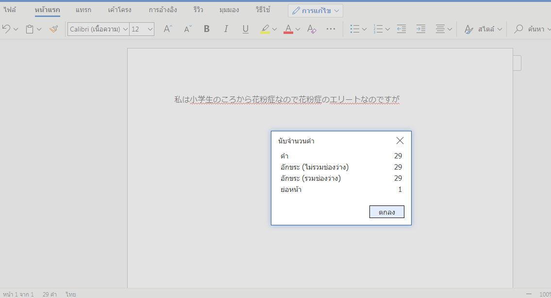 คือเราจะเปิดคอมมิชชั่นแปลภาษาญี่ปุ่นเป็นภาษาไทยค่ะ แล้วงงกับวิธีนับค่ะ พอลองพิมใส่word ดู แล้วได้เเบบนี้ค่ะ