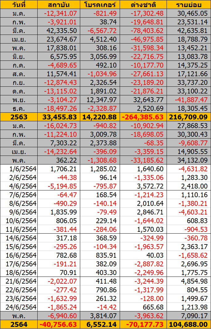 Sinthorn Summary 24/6/2564 : ต่างชาติซื้อสุทธิ 665.68 ลบ.