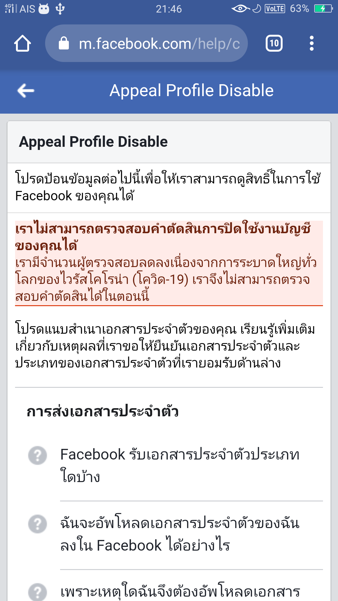 แบบนี้มีใครเเก้ได้ไหมคับ Facebookโดนปิดใช้งาน