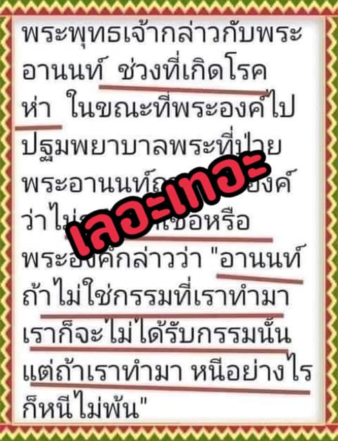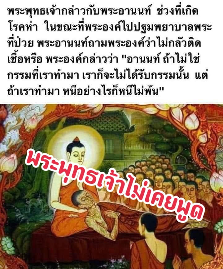 "นี่เห็นไหม พวกฝรั่งมันตายกันเยอะ เพราะมันมีกรรมหนัก ไม่รู้จักสวดมนต์นั่งสมาธิ เลยตายกันเยอะ"