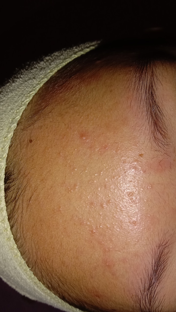 ขึ้นบริเวณหน้าผากแบบนี้เรียกว่าสิวอะไร และมีวิธีรักษายังไงคะ ปล.แท็กผิดขออภัยค่ะ