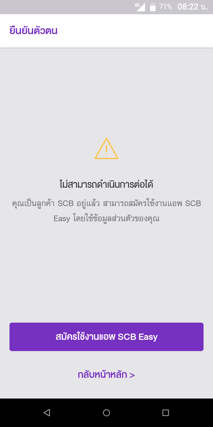 พอทำไปถึงขั้นตอนการยืนยันตัวตนผ่าน NDID พอกรอกข้อมูลลงไปครบละสแกนหน้าผ่านละ พอกดยืนยันมันขึ้น คุณไม่สามารถดำเนินการผ่านแอป scb ได้ เนื่องจากเงื่อใขไม่เป็นไปตามที่ธนาคารกำหนด กรุณาติดต่อที่ธนาคร คือผมไ