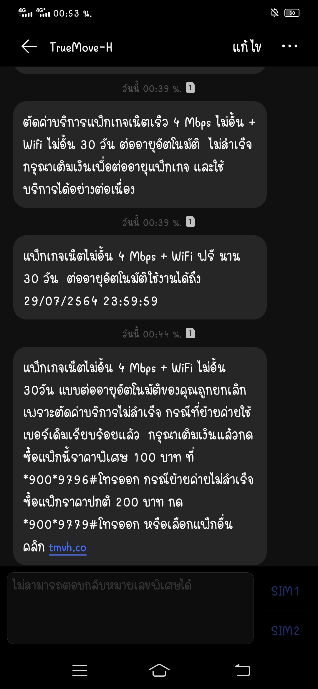 เราเติมเงินโทรศัพท์ 50฿ หักเงินในซิมแล้วสมัครเน็ตเองเฉยเลยค่ะ เป็นแบบต่ออายุอัตโนมัติด้วย😭😭😭😭 เติมเงิน 50฿ ก็หักทั้ง 50฿เลย โหดร้ายมาก ไม่ได้อยากสมัครสักหน่อย แถมยังเป็นแบบต่ออายุอัตโนมัติทั้งๆ