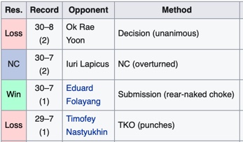 เปิดตัวมาใน one เจอกับ Timofey แพ้ด้วยการน็อค ก่อนจะกลับมาเรียกศรัทธาคืนได้ในไฟต์ที่สองด้วยการชนะซับมิชชัน Folayang หลังจากนั้นเมื่อลงแข่ง เจ้าตัวกลับถูกปรับแพ้ฟาวล์ เนื่องจากไปโจมตีที่ด้านหลังศีรษะของคู่ ล่าสุดก็แพ้คะแนนไป