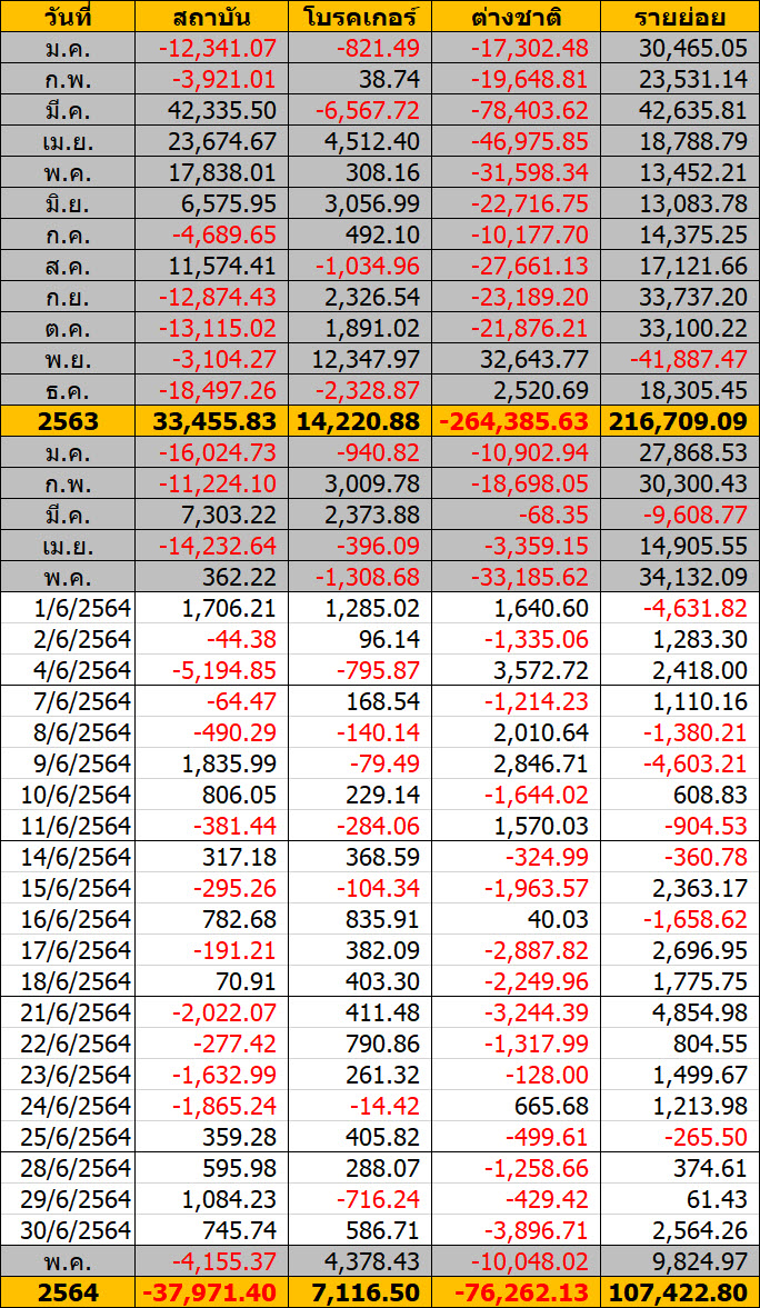 Sinthorn Summary 30/6/2564 : ต่างชาติขายสุทธิ 2,564.26 ลบ.