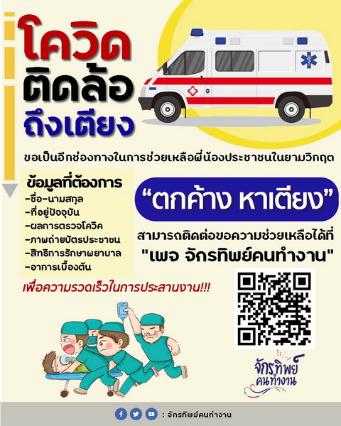 “บิ๊กแป๊ะ” ผุดโครงการ “โควิด ติดล้อ ถึงเตียง” ช่วยหาเตียงให้ผู้ติดเชื้อตกค้าง เผยหาก ชาวบ้านเดือดร้อนอินบ๊อกซ์มาที่ “เพจจักรทิพย์คนทำงาน” พร้อมช่วยเต็มที่ แถมบุกถึงหน้าประตูบ้านแจกถุงยังชีพชุมชนกักตัว