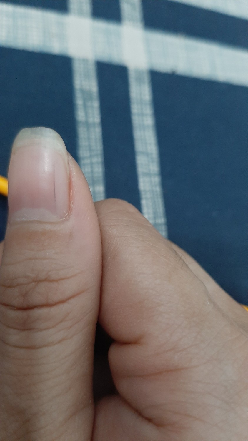ขอสอบถามหน่อยครับพอดีมีเส้นดำๆขึ้นตรงที่เล็บนิ้วโป้งข้างขวาแบบนี้ เป็นอันตรายไหมครับ ผู้รู้ช่วยบอกทีนะครับ
