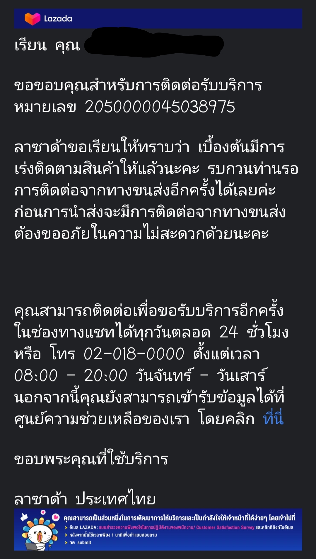 สั่งของจาก Lazada ส่งของโดยบริษัท LEX TH ส่งช้าโครตจะช้าเลย