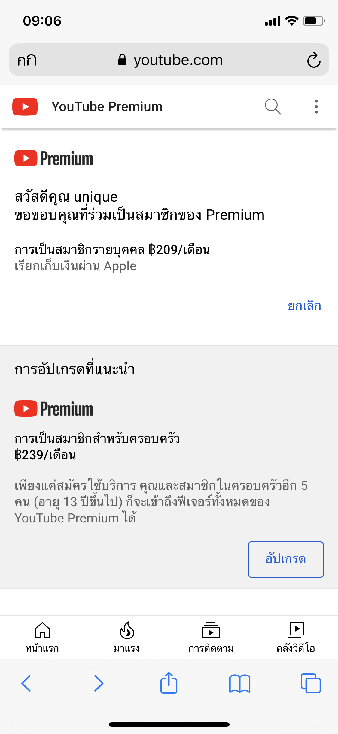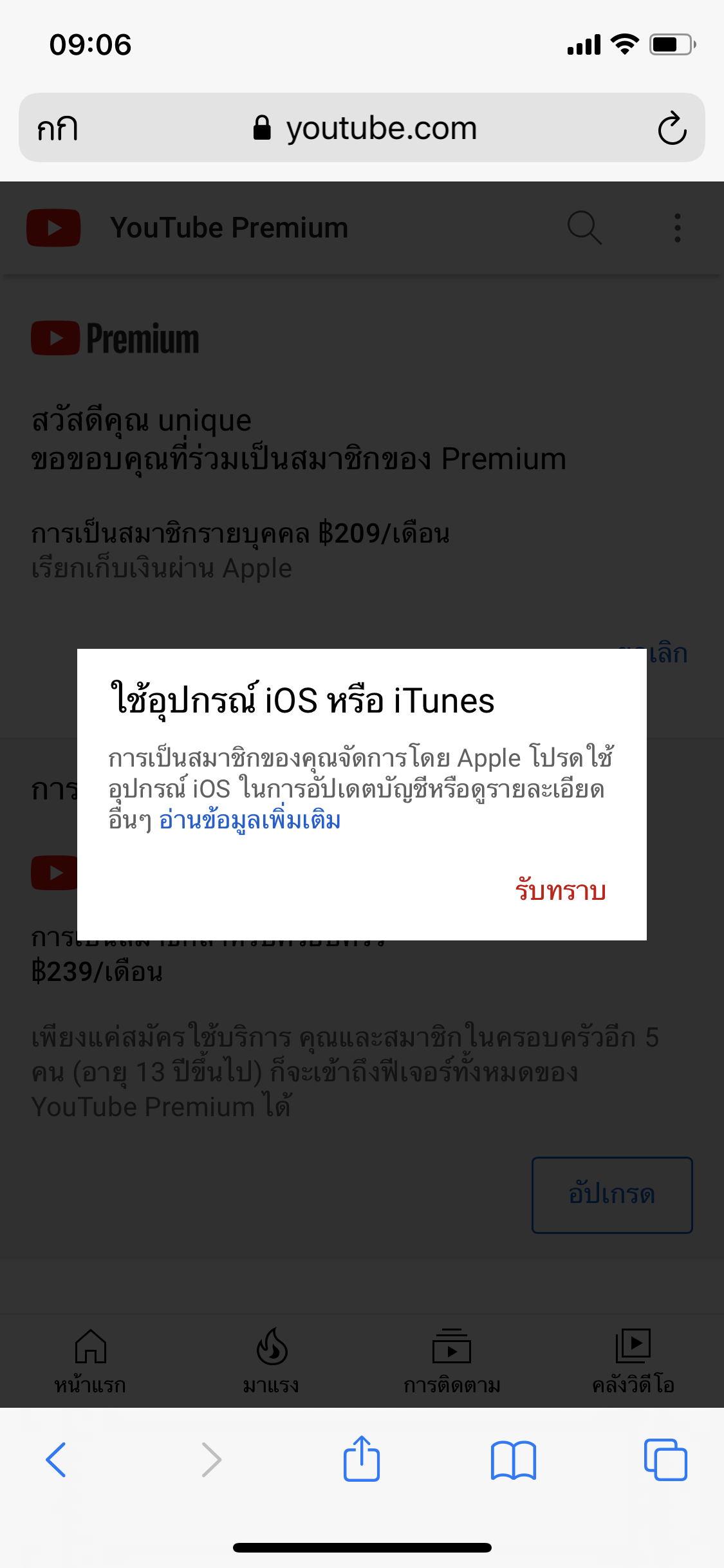 ต้องการเข้าไปยกเลิกยูทูปพรีเมียม แต่ขึ้นแบบในรูป ทำยังไงดีครับ ขอบคุณครับ