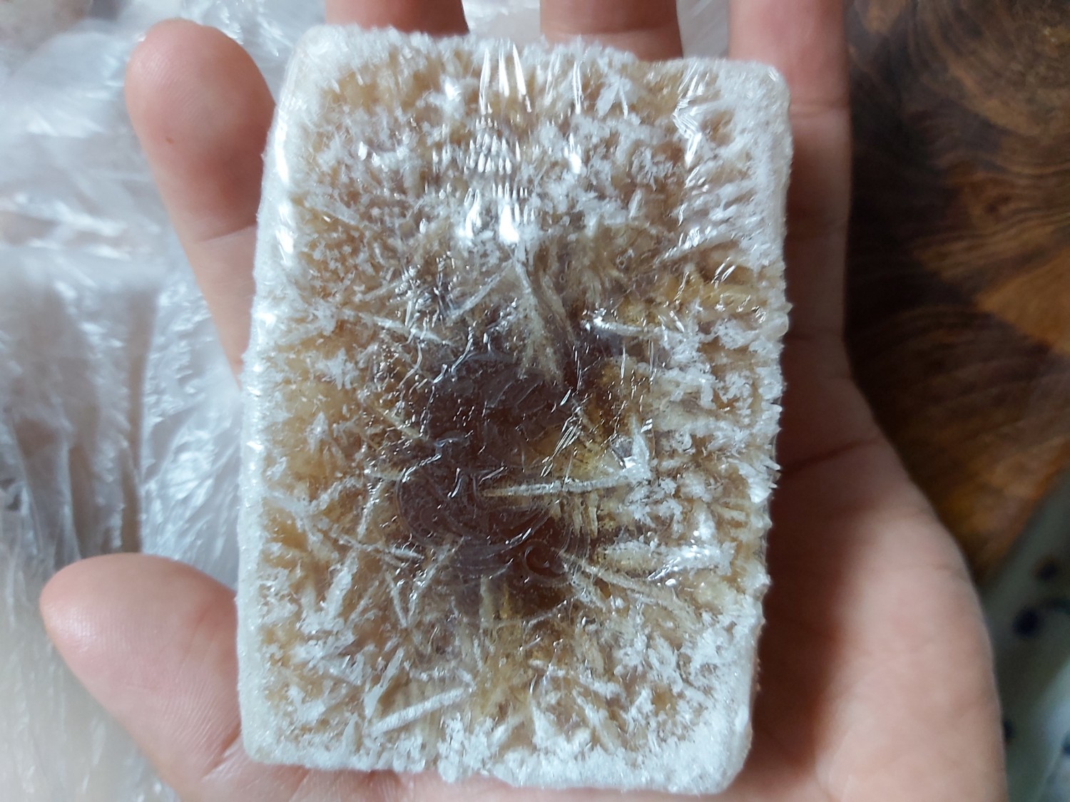 พอดีทำสบู่หัวไชเท้า+น้ำผึ้ง+ว่านหางจระเข้ แล้วห่อเก็บไว้ มันขึ้นผลึกน้ำตาลขึ้นเป็นเกล็ดเลยค่ะขึ้นเยอะมาก หรือเพราะอาจจะใส่น้ำผึ้งเยอะเกินไป หรืออาจจะเป็นปฏิกิริยาทางเคมี มีรูปประกอบค่ะ