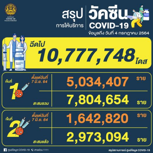 !!!... สรุป เช้านี้ ...................... ฉีดแล้ว ... = 10,777,748 โดส ...!!!