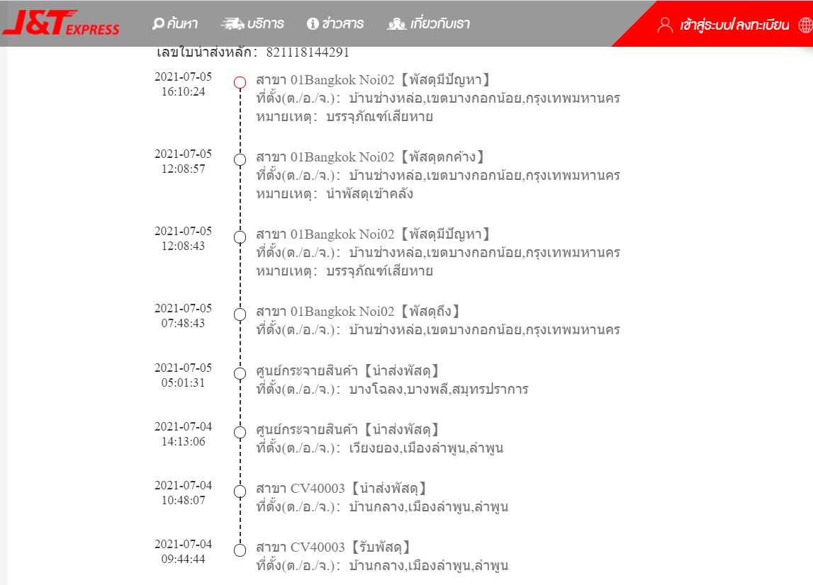 ส่งพัสดุJ&T ยังไม่ได้รับตรวจสอบพัสดุเสียหายต้องทำอย่างไร