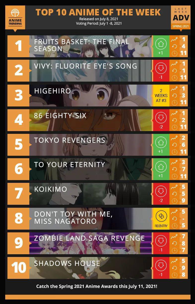 ถ้าไม่ผิดพลาดอะไรสามารถติดตามผลอันดับทางการได้ในวันอาทิตย์นะคะ เราเอามาลงอาจช้าหน่อยอยากทราบไวๆตามได้ที่เพจ ANIMETRENDING นะคะ