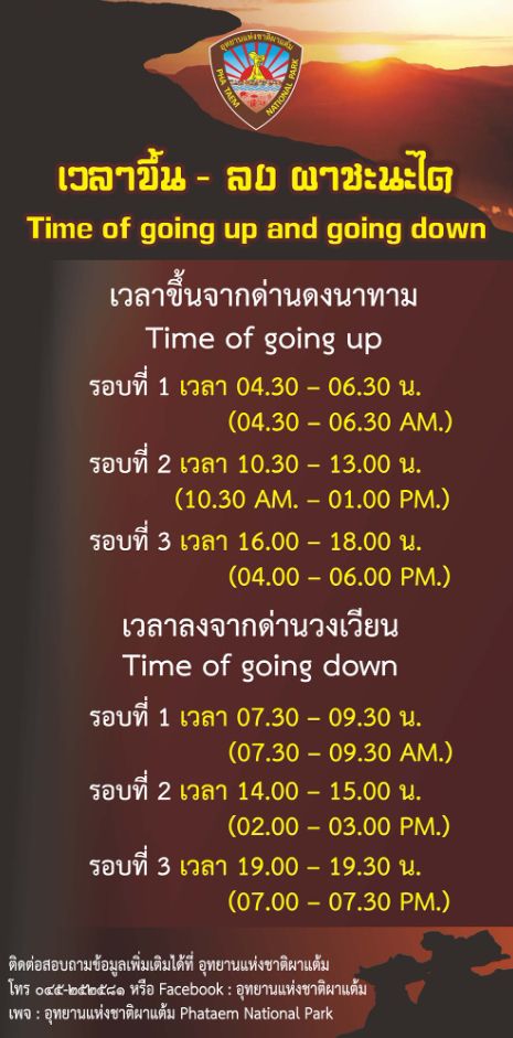 ** เวลาขึ้นลงถามจากอุทยานแห่งชาติผาแต้มล่าสุด