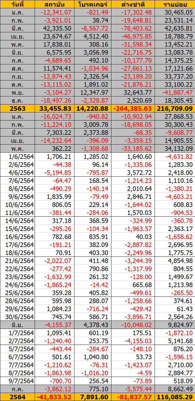 Sinthorn Summary 9/7/2564 : ต่างชาติขายสุทธิ -73.89 ลบ.