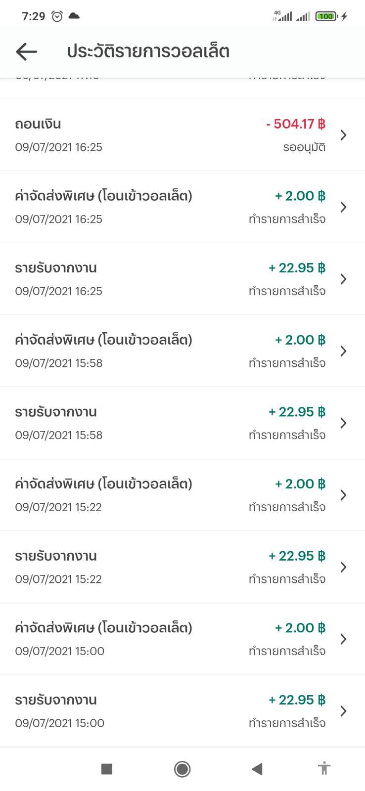 โอนยอดจากวอเล็ตไปเป็นเครดิตรับงานแล้วเงินไม่เข้าเกิน 12 ชั่วโมงแล้ว