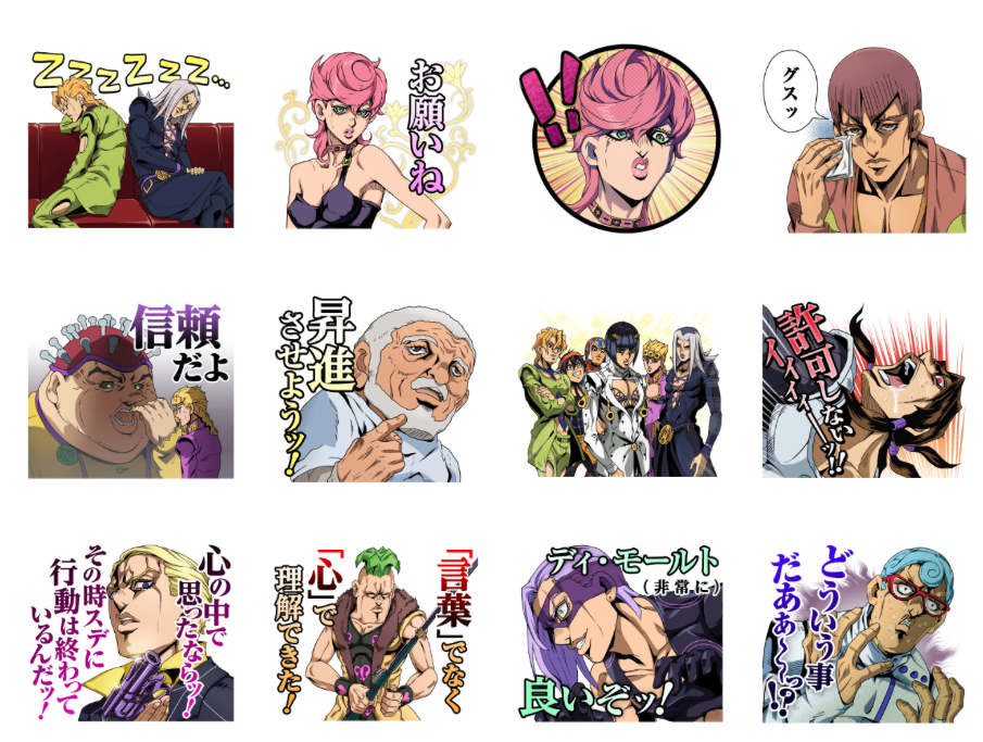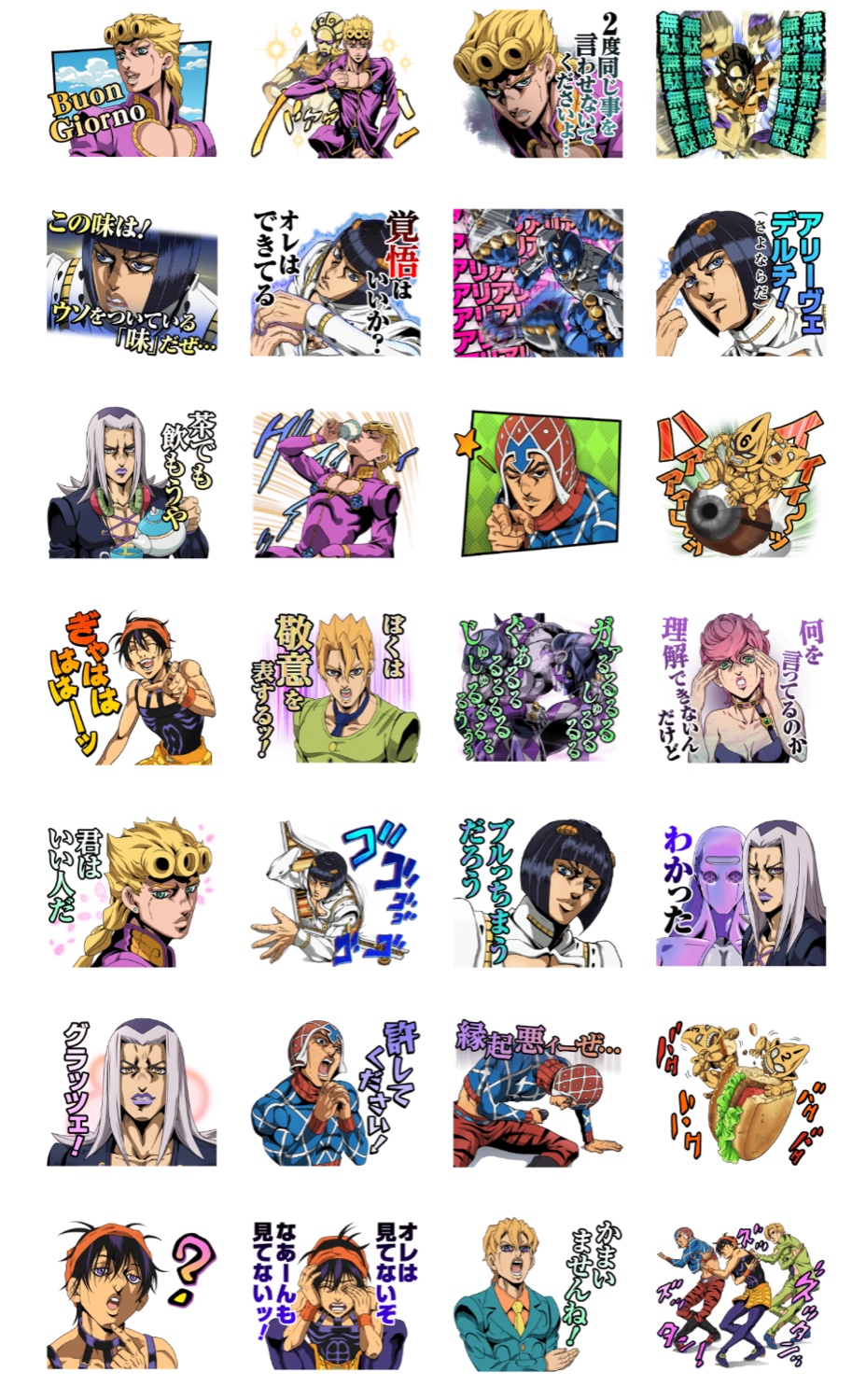 อยากให้ช่วยแปลสติ้กเกอร์ไลน์โจโจ้ภาค5 ชุดแรกให้หน่อยค่ะ
