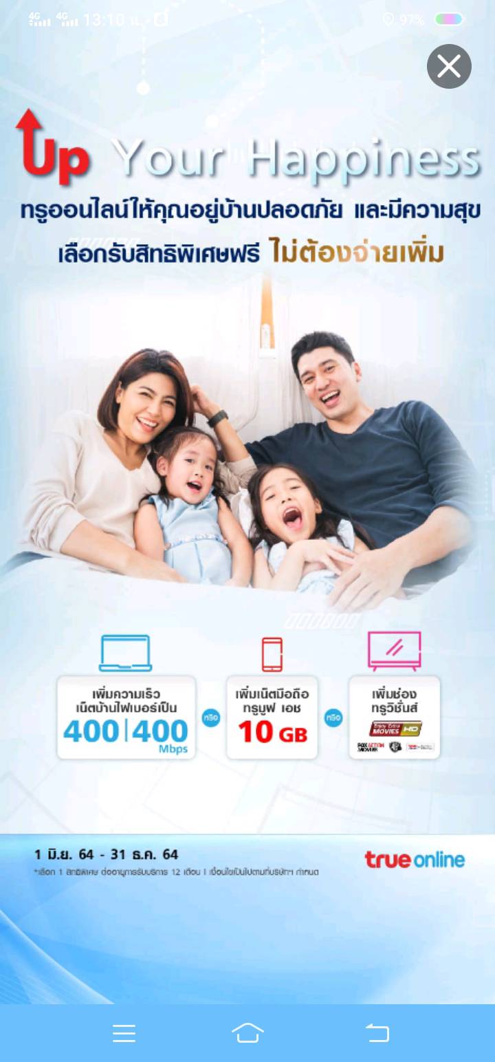 เพิ่งกรอกข้อมูลขออัพเกรด ทรูออนไลน์ 400/400 ไปแล้วเมื่อวันที่10/กค/2564