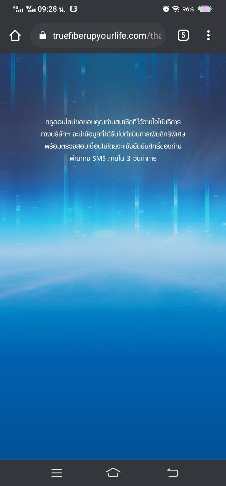 แล้วให้ผมรอsmsแจ้งกลับภายใน3วัน รบกวนทรูออนไลน์ช่วยเริ่งดำเนินการให้ได้ไหมครับ ตอนนี้ work from home ลำบากมากครับ ขอบคุณครับ