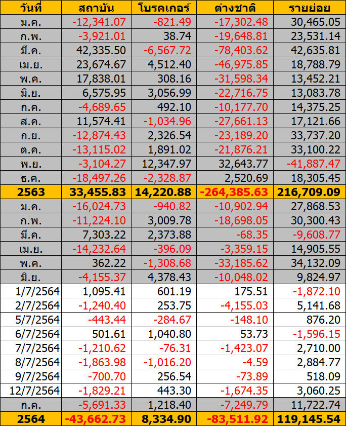 Sinthorn Summary 12/7/2564 : ต่างชาติขายสุทธิ -1,674.35 ลบ.