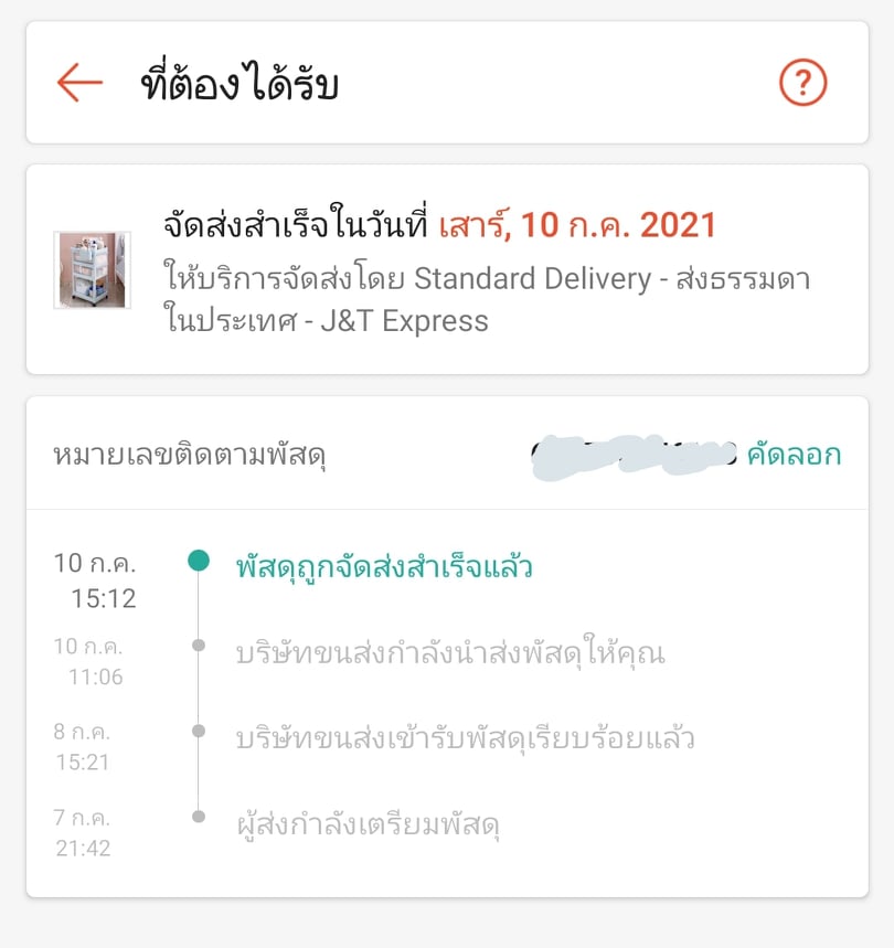 ดังนั้นแล้ว สามีของดิฉันก็..เอ๊ะ ขึ้นมาบ้าง..เข้าไปเช็ค Status ของที่สั่ง สรุปว่า J&T Express ก็เป็นคนจัดส่งให้เหมือนกัน และเจอ Status ขึ้นว่า เซ็นรับพัสดุแล้ว เช่นกัน ดิฉันเลยให้โทรหาน้องสาขาคนนั้น เพราะเดาว่าน่าจะถูกไปกองอยู่ที่อพาร์มเมนนั้นเหมือนกัน...แล้วก็จริงค่ะ