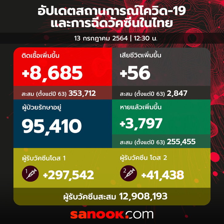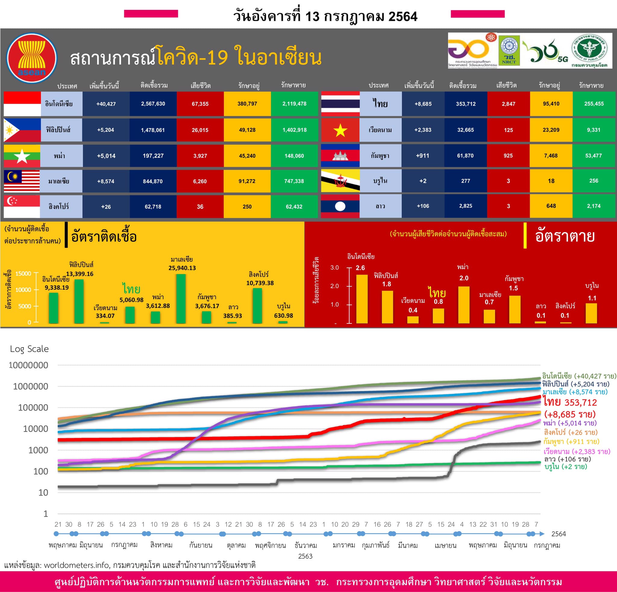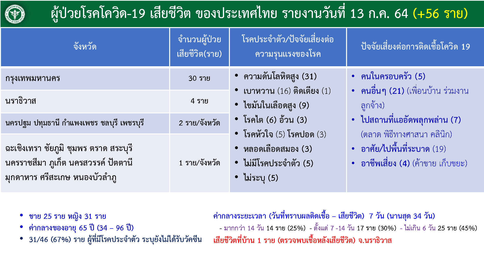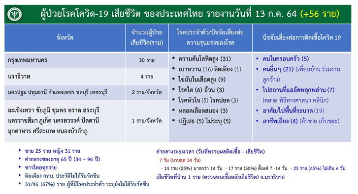 🇹🇭มาลาริน💟วันนี้(13ก.ค.)ป่วย8,685คน รักษาหาย3,797คน เสียชีวิต56คน/เดลตาระบาดด้วยความเร็วสูง/ขึ้นทะเบียนยาฟาวิพิราเวีย