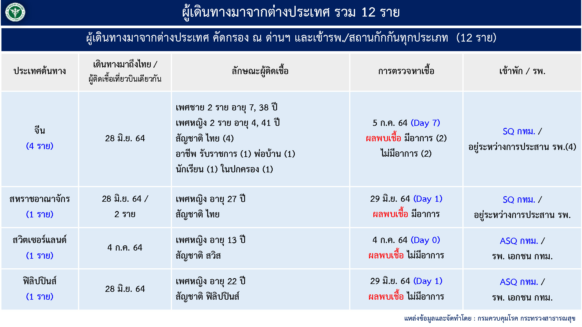- เป็นผู้ติดเชื้อที่เดินทางจากต่างประเทศเพิ่มขึ้น 12 ราย
