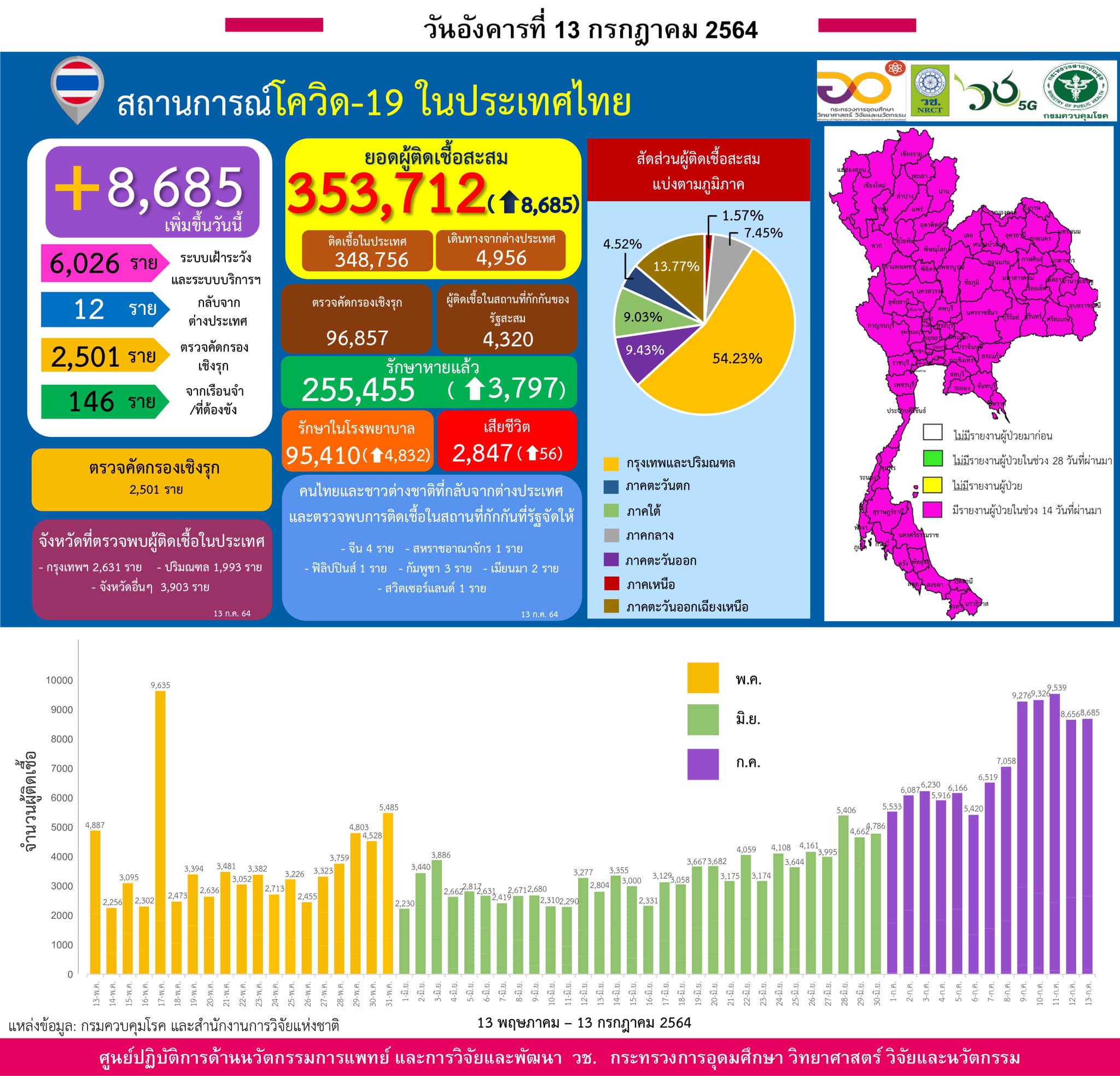 วันนี้มีผู้ติดเชื้อ 8,685 ราย รวมผู้ติดเชื้อสะสม 353,712 ราย