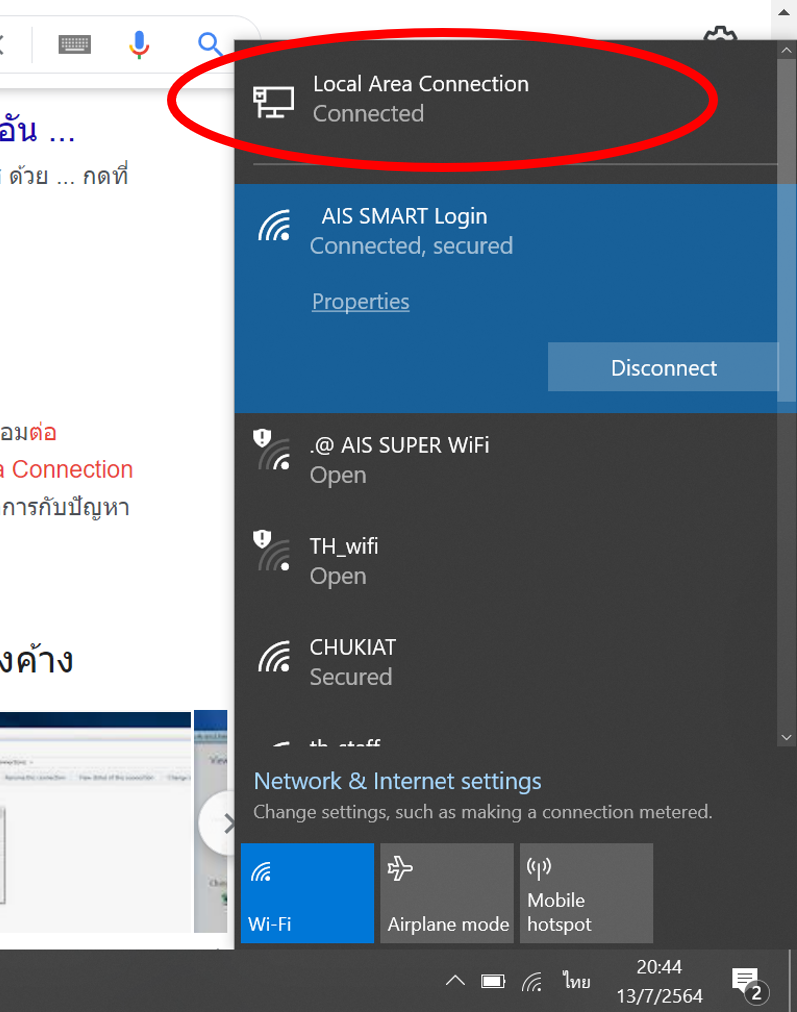 ไม่ได้ต่อสายแลนหรือ USB hotspot จากมือถือ แต่ Local area ค้างแบบนี้ครับ แก้ยังไงครับ ขอบคุณล่วงหน้าครับ