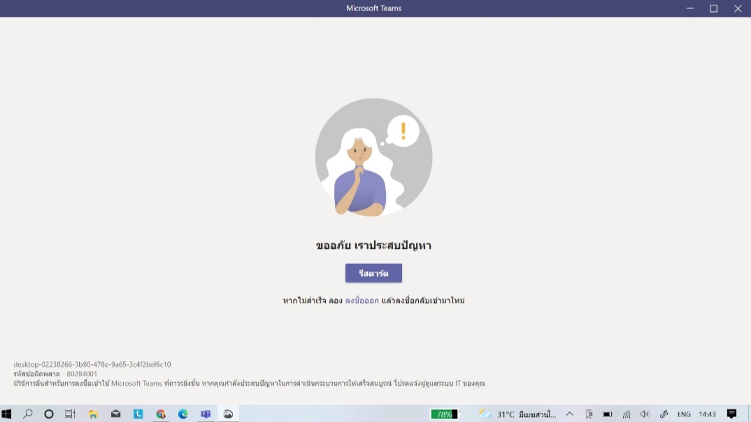 ไมโครซอฟทีม เข้าไม่ได้ อยู่ดีดีก็เป็น ทำยังไงดีคะ