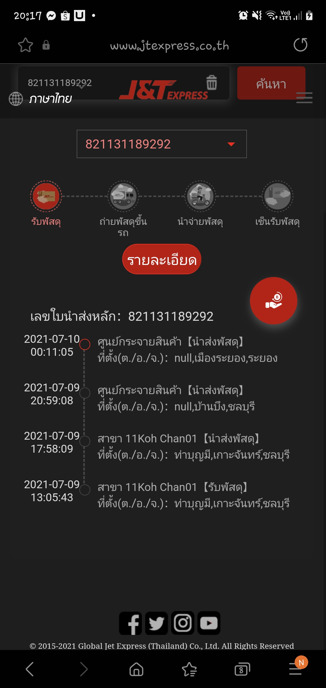 ขนส่ง J&T Express ไม่ทราบว่าเอาของไปไว้ไหน