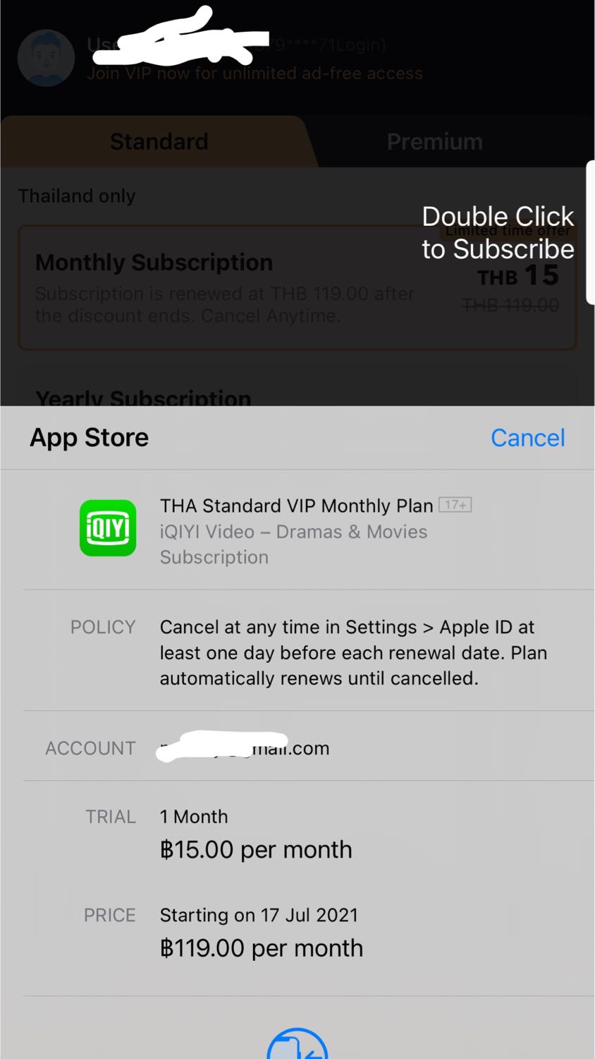 แบบนี้ต้องเสียเงินต่อไหม ซื้อ app iqiyi 15 บ.แต่เขียนว่าต้องยกเลิก ก่อนวันที่ 17 กค.เราไม่ถนัด iphone แบบนี้ยกเลิกยังคะ?