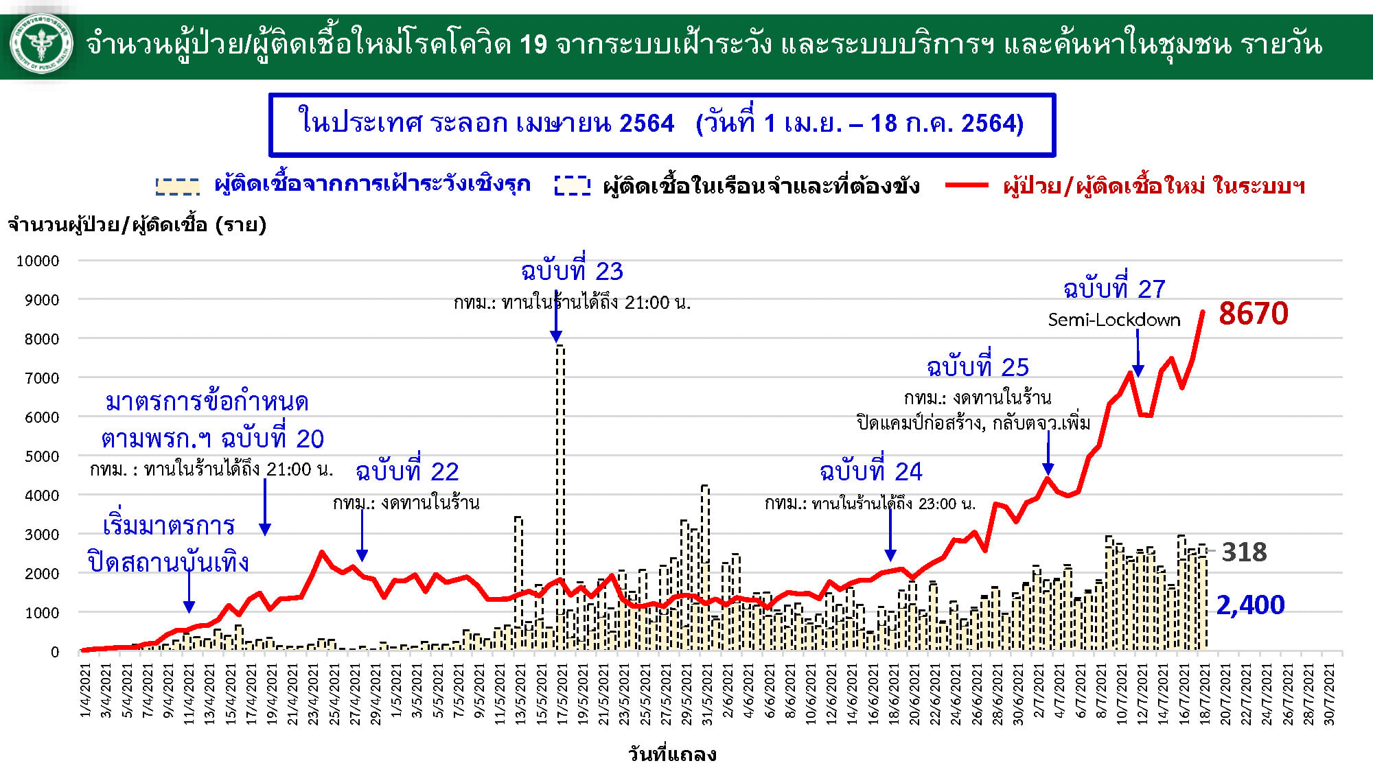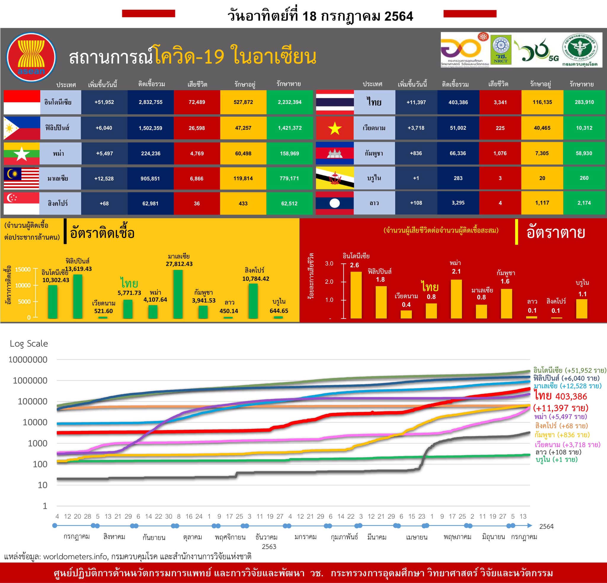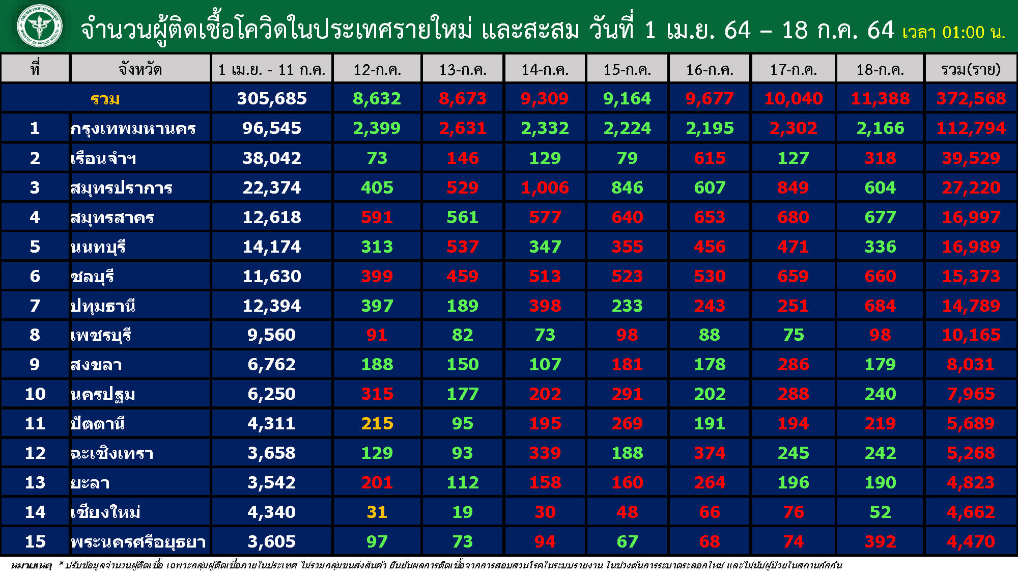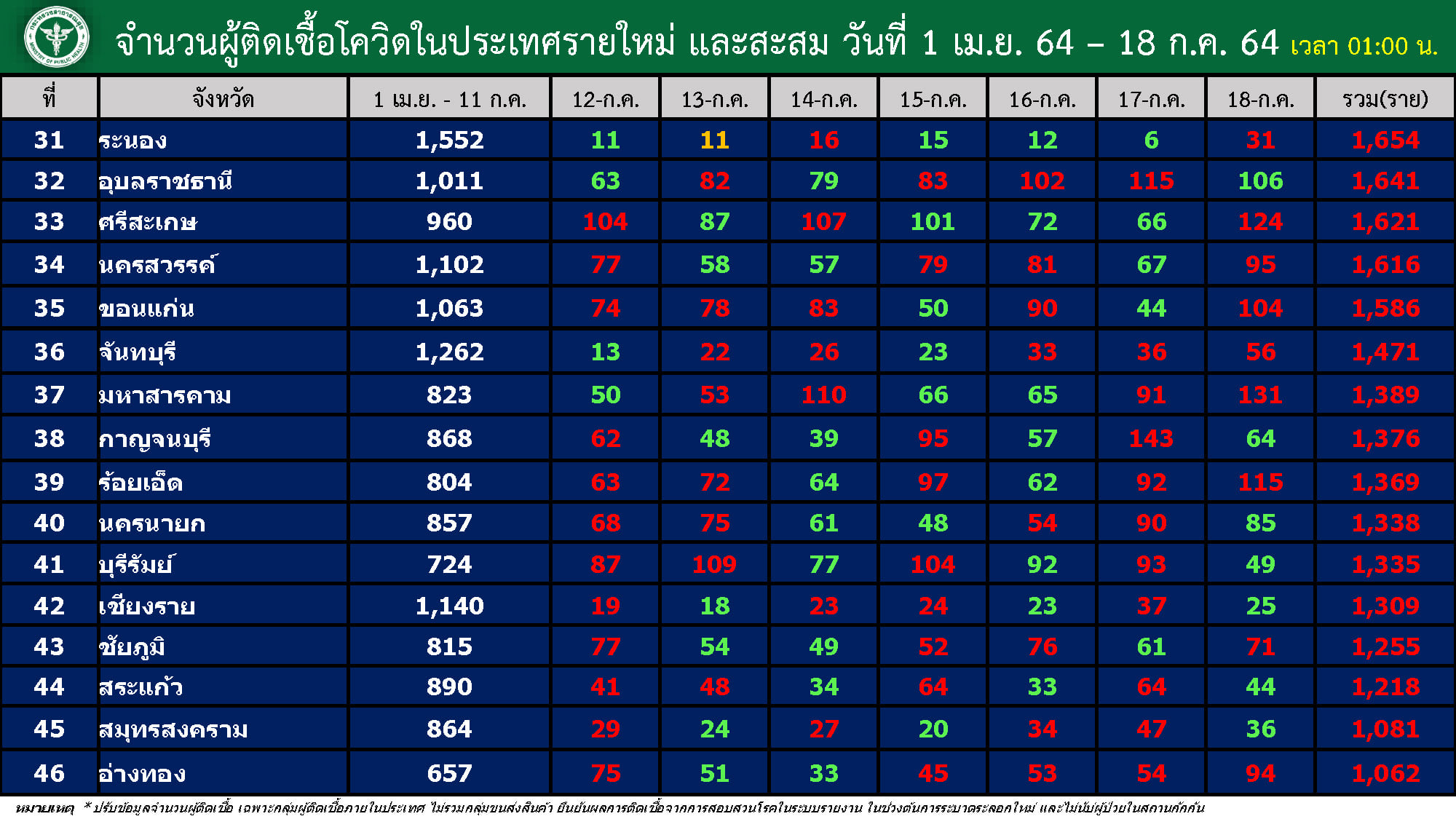 🇹🇭มาลาริน🔴วันนี้(18ก.ค.)ป่วยใหม่11,397คน รักษาหาย5,726คน เสียชีวิต101คน/เปิดมาตรการยกระดับเข้ม