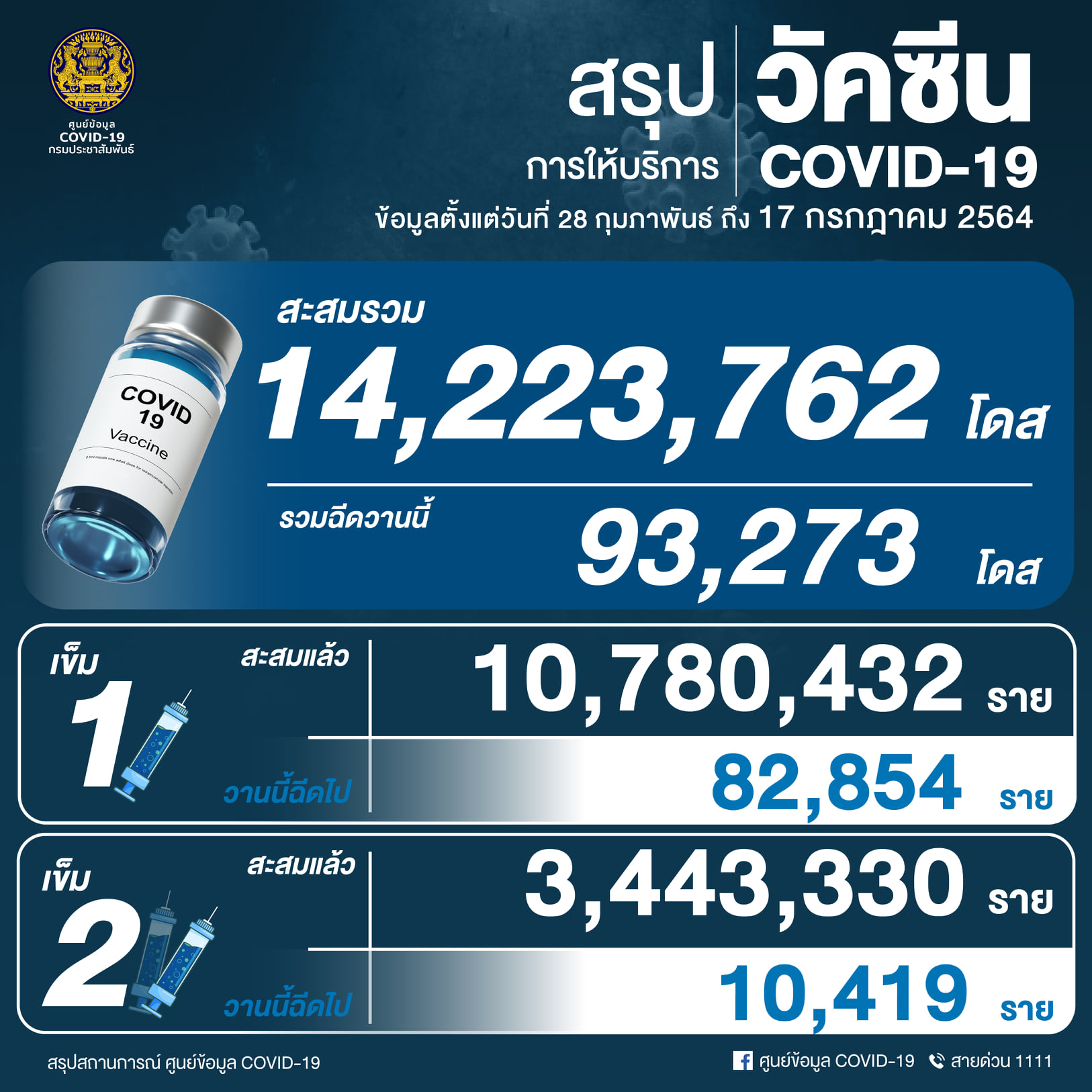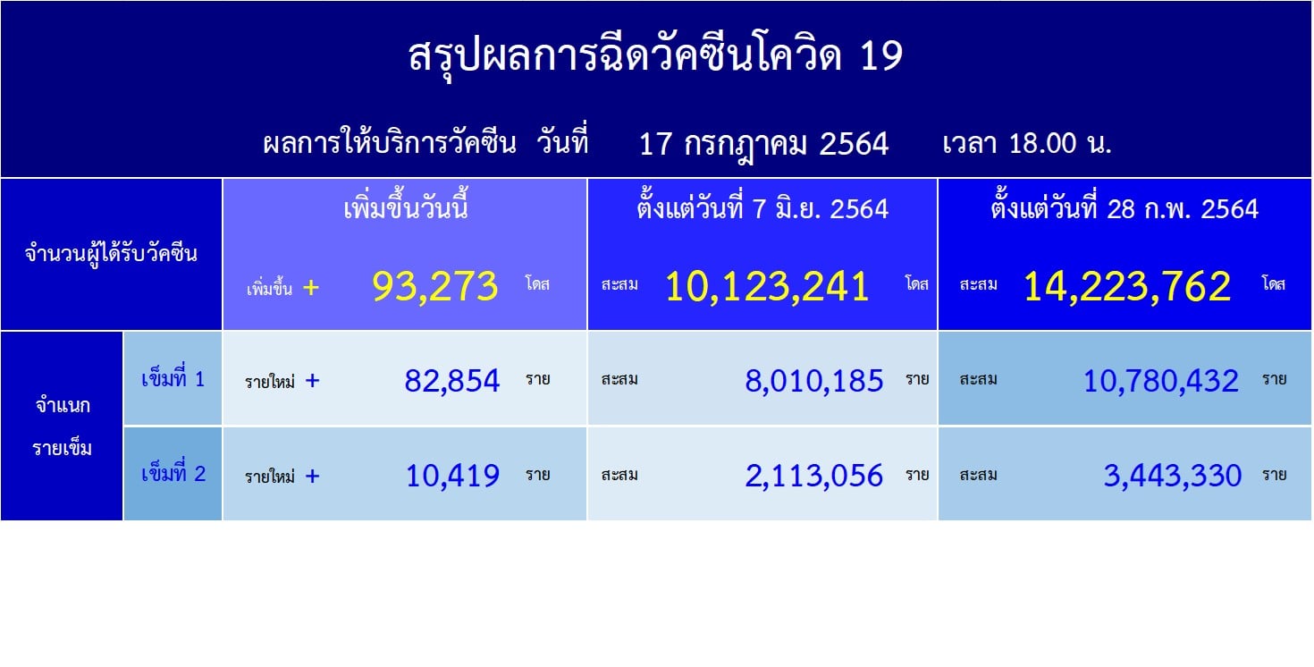 ภาพรวมยอดฉีดวัคซีน วันที่ 17 กรกฎาคม 2564