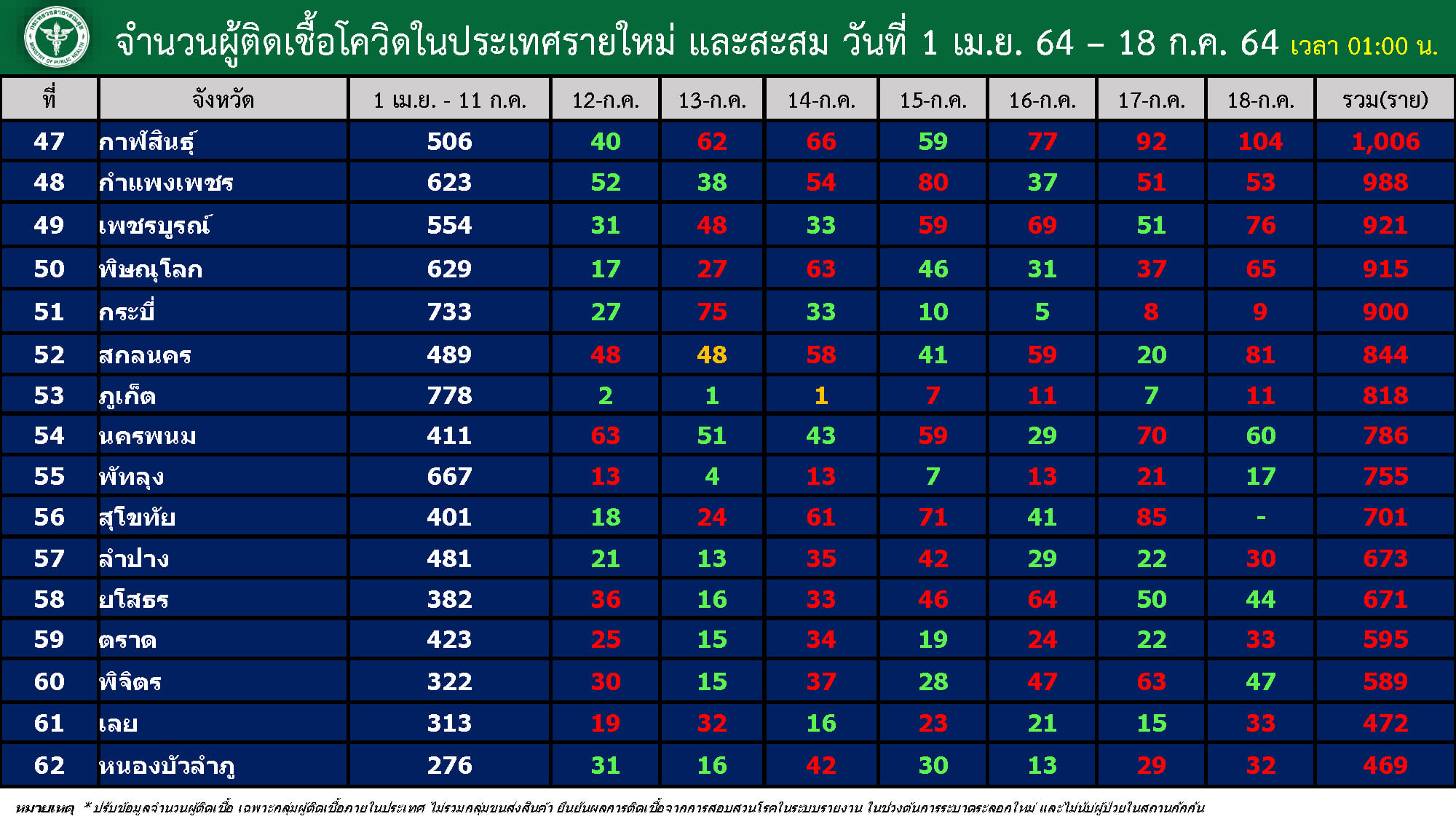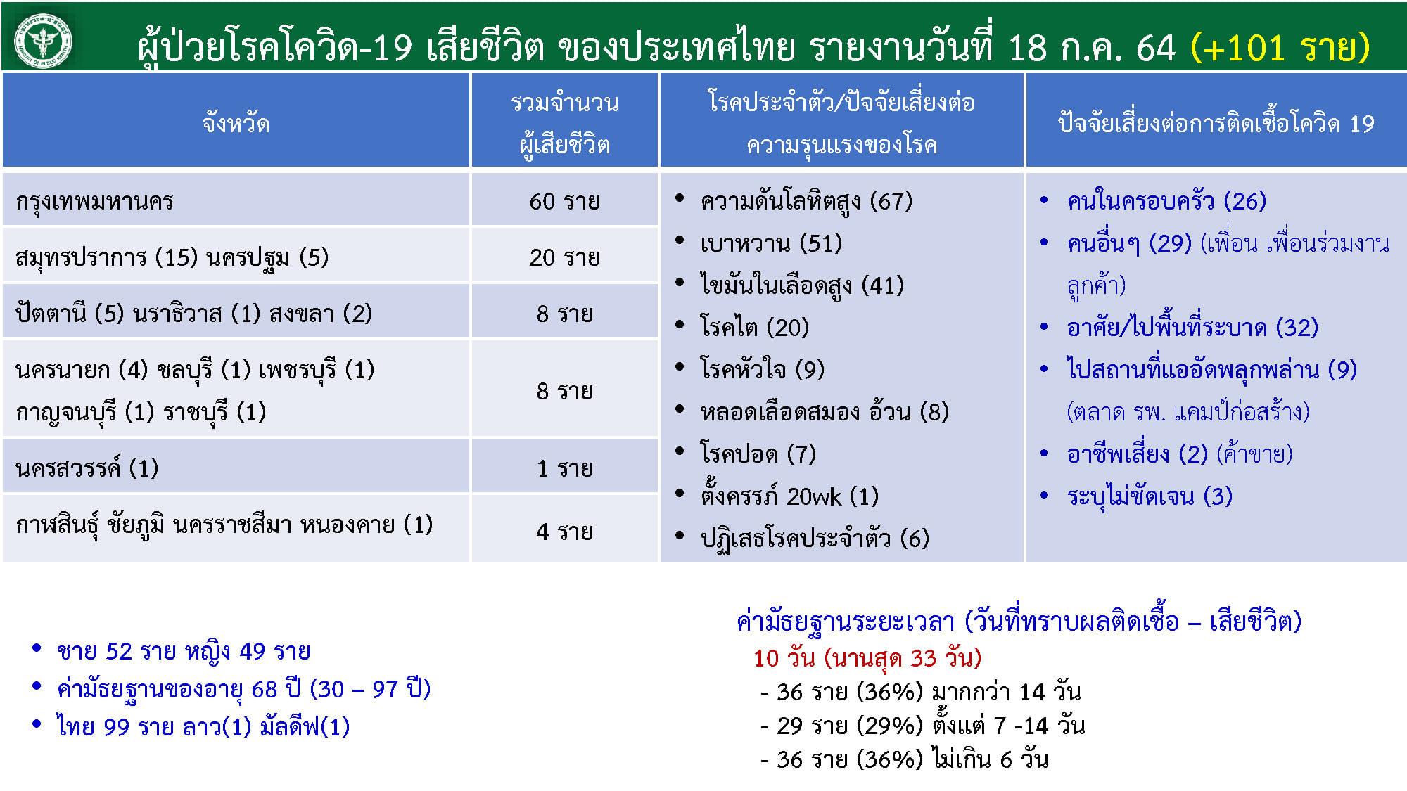 วันอาทิตย์ที่ 18 กรกฎาคม 2564 จำนวน 101 ราย
