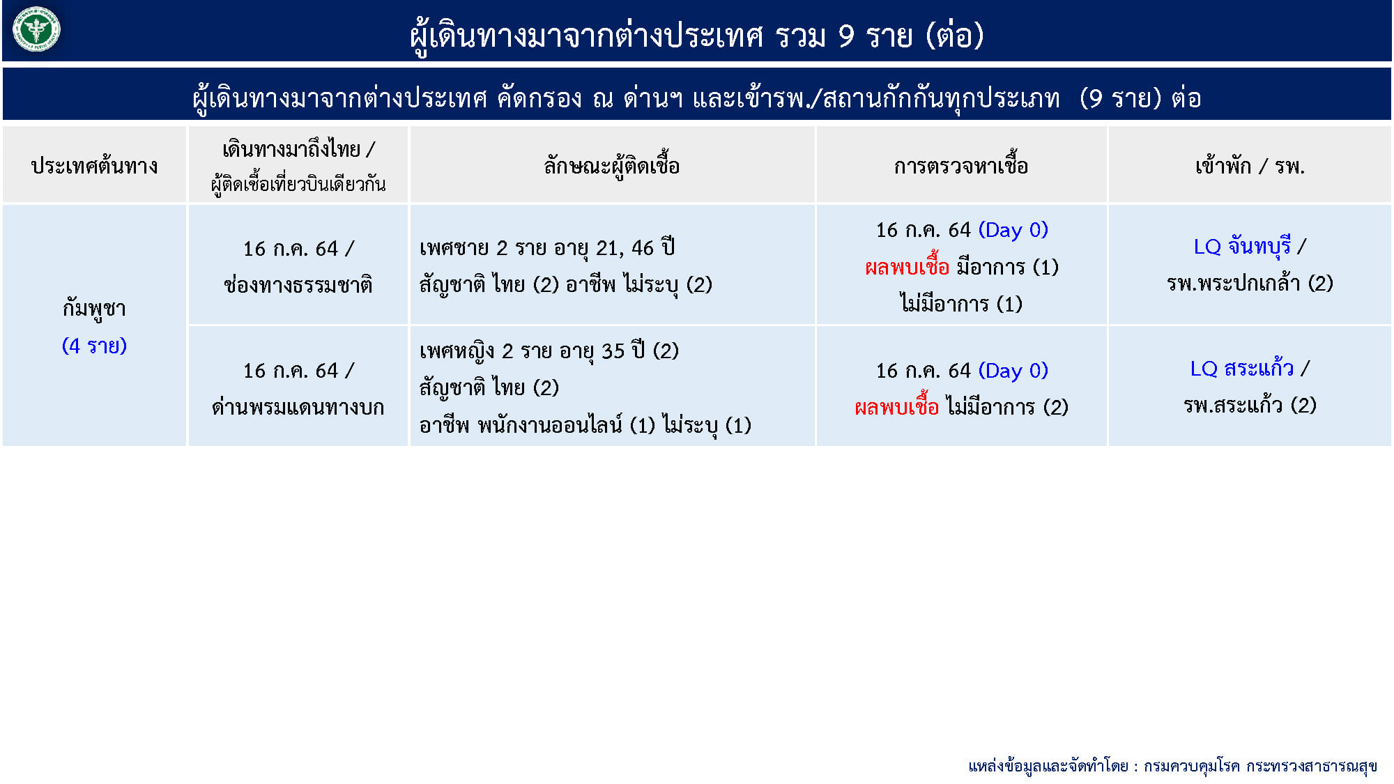 - เป็นผู้ติดเชื้อที่เดินทางจากต่างประเทศเพิ่มขึ้น 9 ราย
